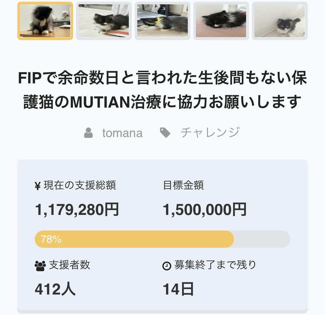 そして達成率が78%になりました!本当に本当にありがとうございます。