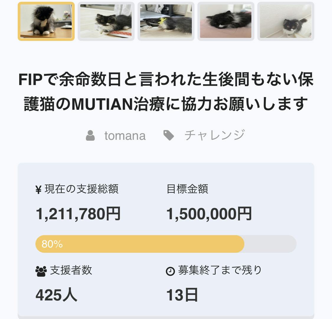 今日は新たに13名の方がご協力くだり、本日までに425名の方にご支援いただきました。