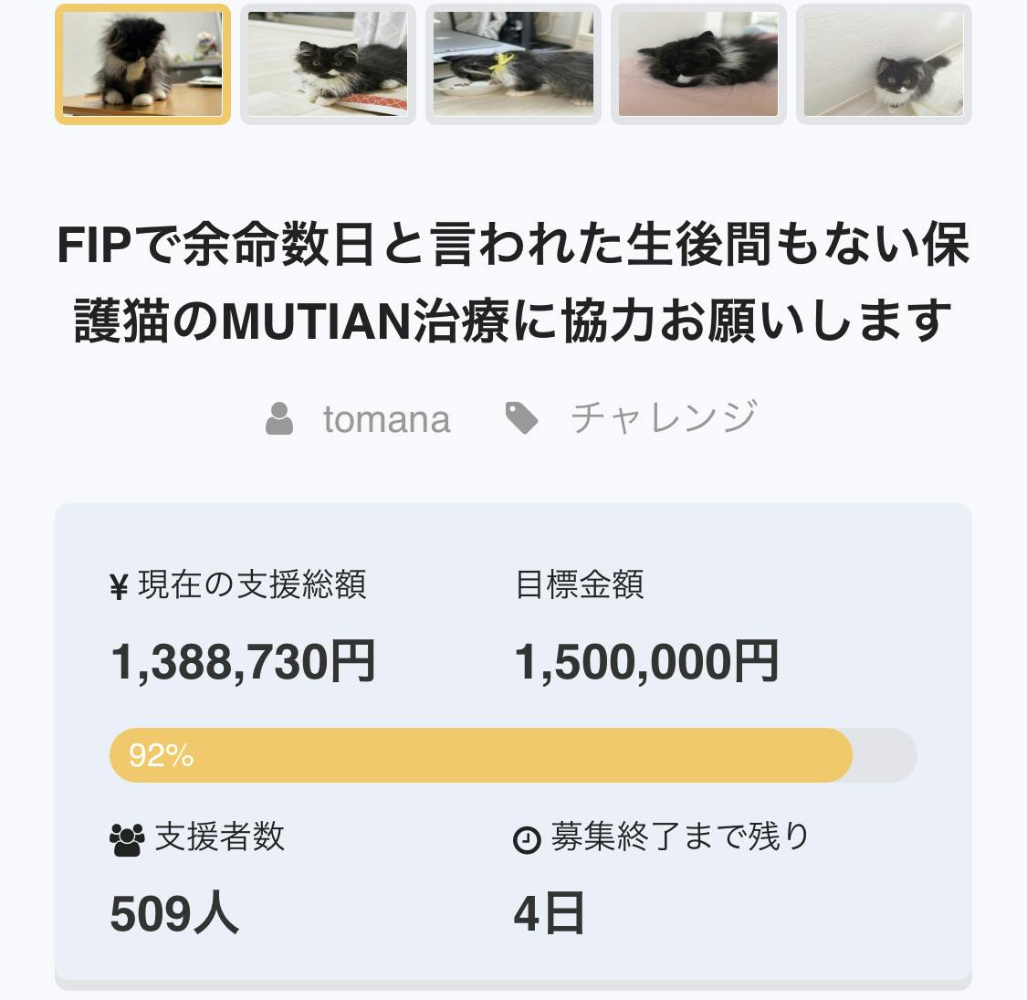 新たに16名の方がご協力くだり、本日までに509名の方にご支援いただきました。