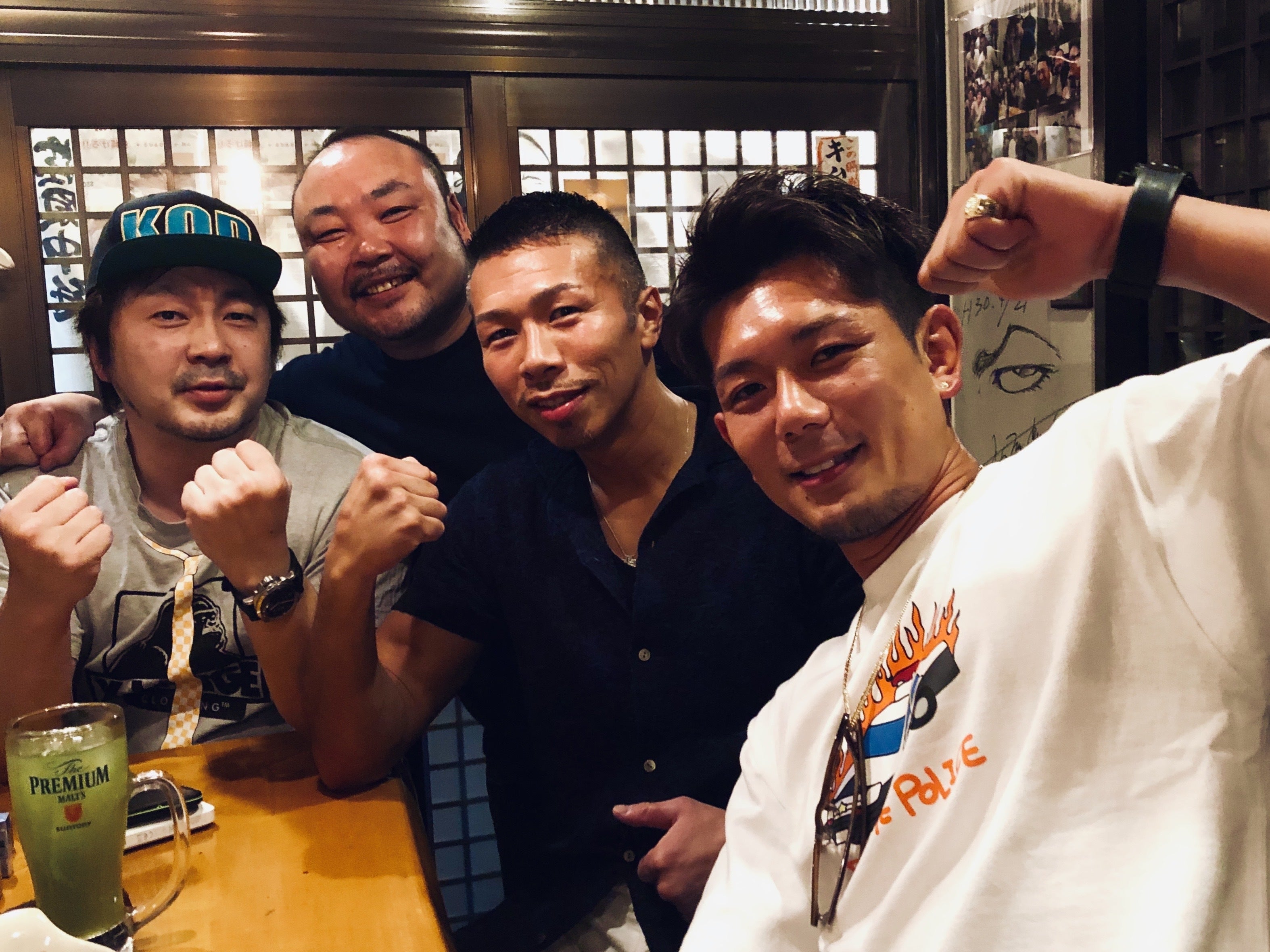 そんな成り立ちの飲み屋ですので、お店の常連さんには、現役プロボクサー 、元プロボクサー 、格闘家、スポーツ選手、ジャーナリスト、カメラマンなども多く、ボクシング・格闘技関連の関係者やファンで日々賑わっています。ふらっと立ち寄ると、いつもテレビで見ている有名な選手に遭遇! なんていうことも珍しくありません。