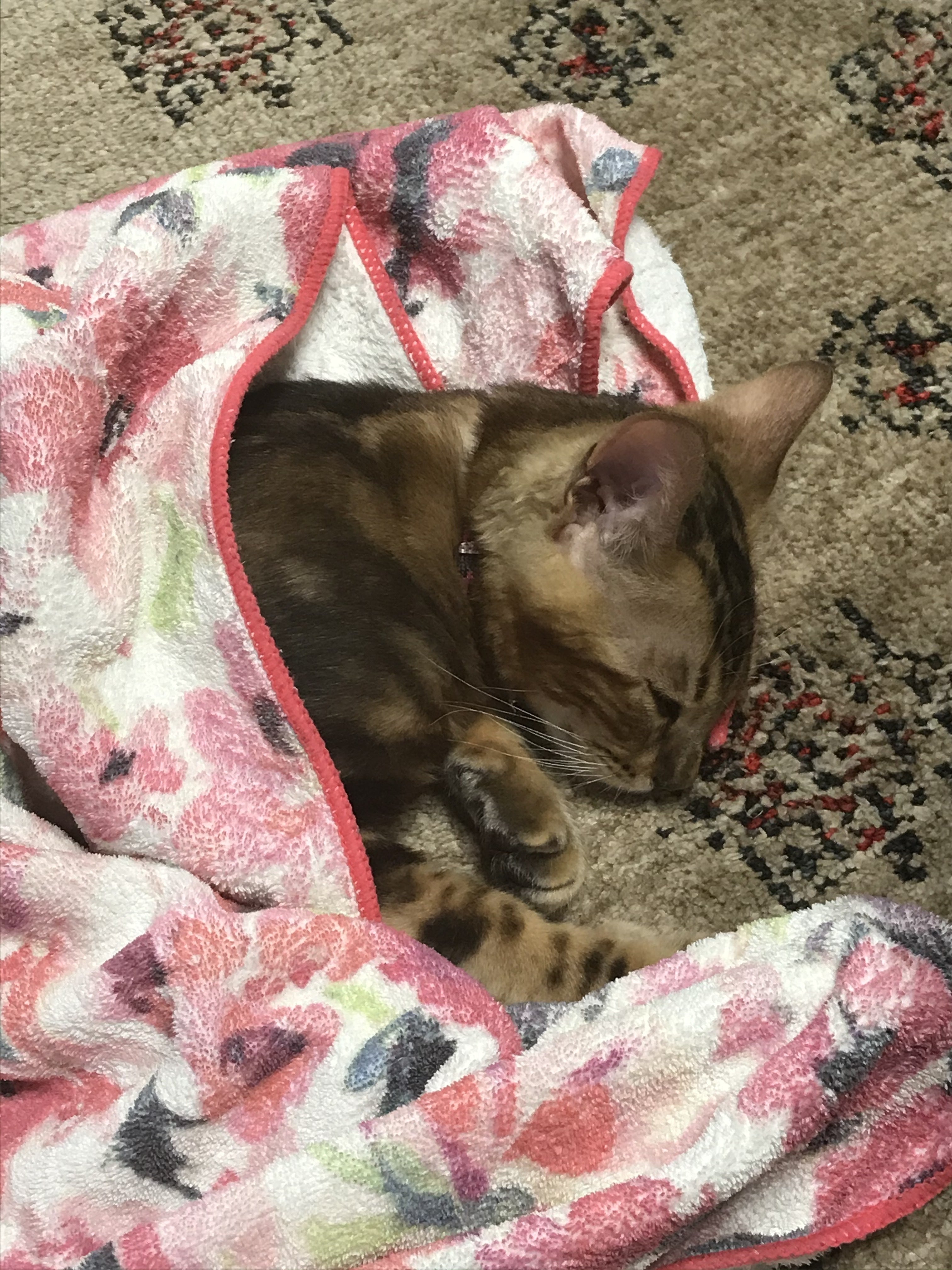 8/9 午前5時病院でお墨付きをもらった次の日、レオンが吐きました。でもレオンは今まで吐いた事がなかったのでびっくり。とても動揺しました。ネットなどで調べると猫が吐く事は割とよくある事だそうで。病院に駆け込むか悩みましたが、もう少し様子を見る事に。よくある事と言っても「うえ、うえ、うえ、げー」と吐く姿はとても苦しそうで辛そうで可哀そう。。。。その後、朝ご飯、昼ご飯、 5グラムくらい食欲がなくなる。元気もなくなる10日この日は嘔吐なし元気になり走り回る。回復に向かうのか?ただ、食欲不振のまま毎食5~10gくらい11日早朝、嘔吐朝ごはんは5グラムくらい食べた。便は2日ほど出ていない。この段階で病院に連れて行く事になりました。私はテレワークではありますが、仕事があり母がお休みだったので連れて行ってもらう事に。後々考えるともう少し早く病院に連れて行ってあげればよかったね。。。先生はFIPの再発を疑い、再び血液検査やエコー一式を受ける。特にエコーでの腹水の様子はとても時間をかけて行ってくれたらしい(母談)結果、FIPの再発ではなさそう。お腹の張りがあるという事で(おそらく下剤のようなもの)液体の注射(口から飲ませる)を貰い、投与することに。