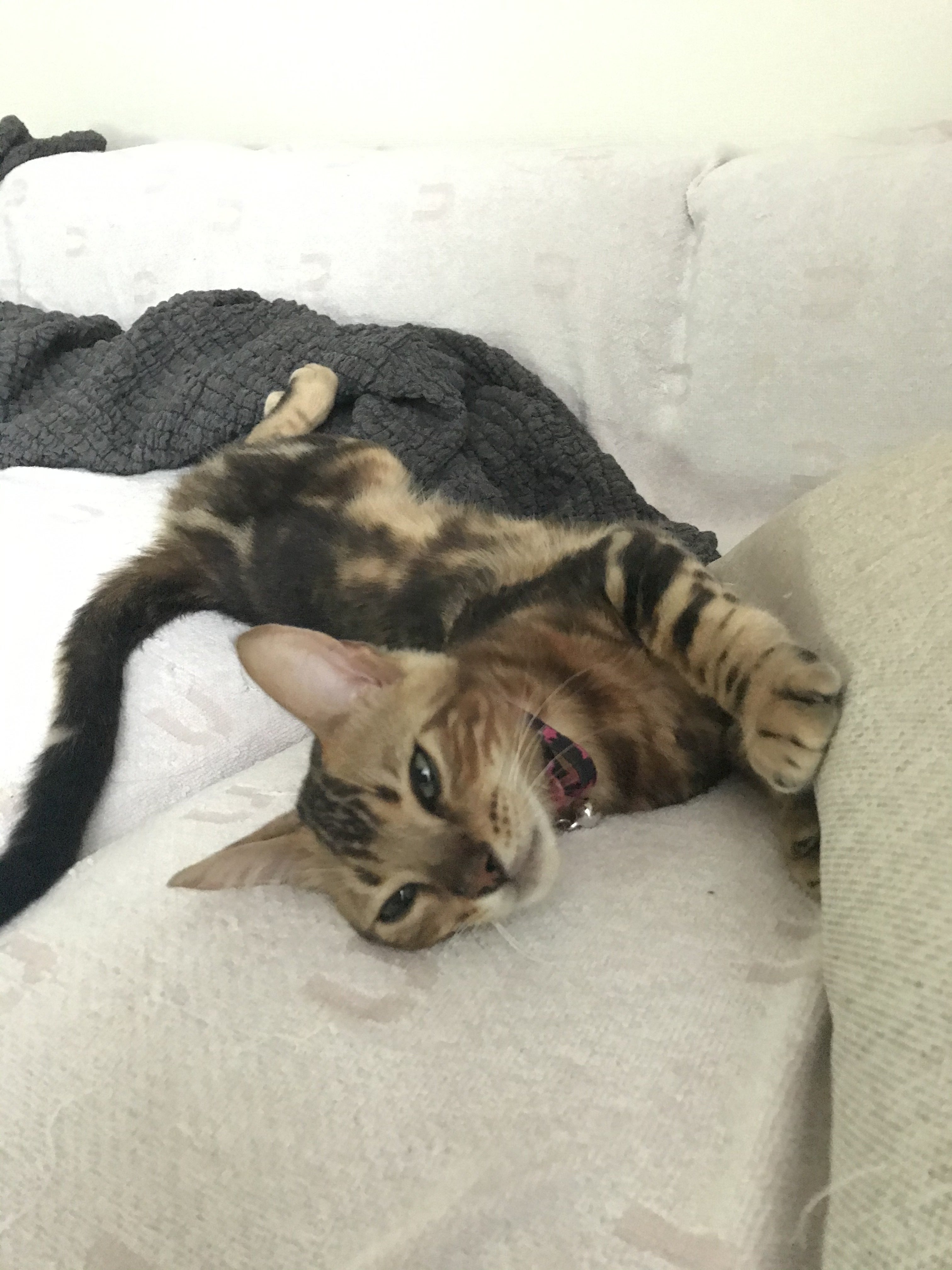 レオンの写真を漁っていると、ごろんと寝転がっているものばかり。観察すると、とことこ歩いてゴロン。ご飯を食べてゴロン。ゴロンとしながら毛づくろい。子供の内からこんなにゴロゴロしててよいものなのか?猫を飼うのが初めてなので、運動量が足りているのかどうかがわからないですが・・・・ただ・・・・恐ろしく暴れん坊でもあるんです。猫じゃらしは基本、使い捨て。以前友人が遊びに来た時に買ってきてくれた立派な猫じゃらしはものの3分でバラバラになりました。噛む力が半端ない!9/5ムティアン投薬が完了しました。8月上旬にAG0.7以上あり、8月中に0.6まで落ち込み、また徐々に回復して9/5には0.8になりました。体重も2.9→2.4→2.8と、レオンに取っては負担の大きい1カ月となりました。血液検査、あとは外注検査2つこちらの結果で再発がなければ投与は完了し、3カ月の経過観察となります。先生は投与完了後、2,3日で食欲不振などが起こったら再発の可能性があるのですぐに病院にくることという事を言われました。この数日間をビクビクしながら過ごします。レオンは順調に回復しているものの、うんちはやはり1.5日に1回のペース前回の二の舞にならないかがとても不安です。ご飯を変えたり、友人に「乳酸菌が最強 」と聞き、乳酸菌入りの缶詰と共にドライフードをあげたりしています。便が硬くない、たっぷり出る、という事から1.5日に1回がレオンの通常なのか?と思う事もあります。が、実際の所よくわかっていません。。。。再発の有無にかかわらず、また、先月体調を壊していた事もあり1週間後に再検査です。何事も内容祈りつつ、1週間を過ごしました。レオン自身は嘔吐もなくなり、元気も戻り、食欲も取り戻し、体重の増加に勤しむ毎日。私と母は再び 、じゃれてくるレオンの爪や歯で流血続きの毎日になりました。