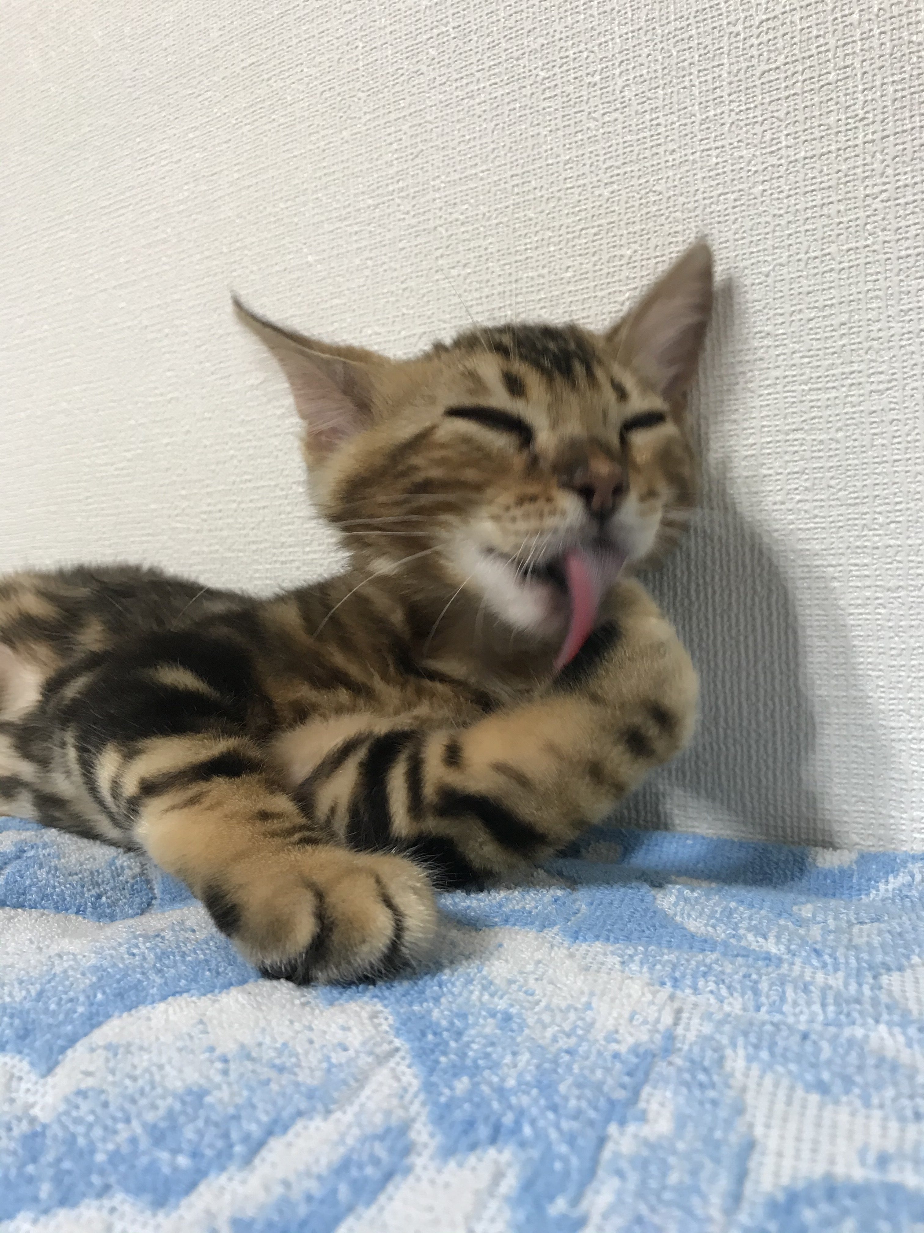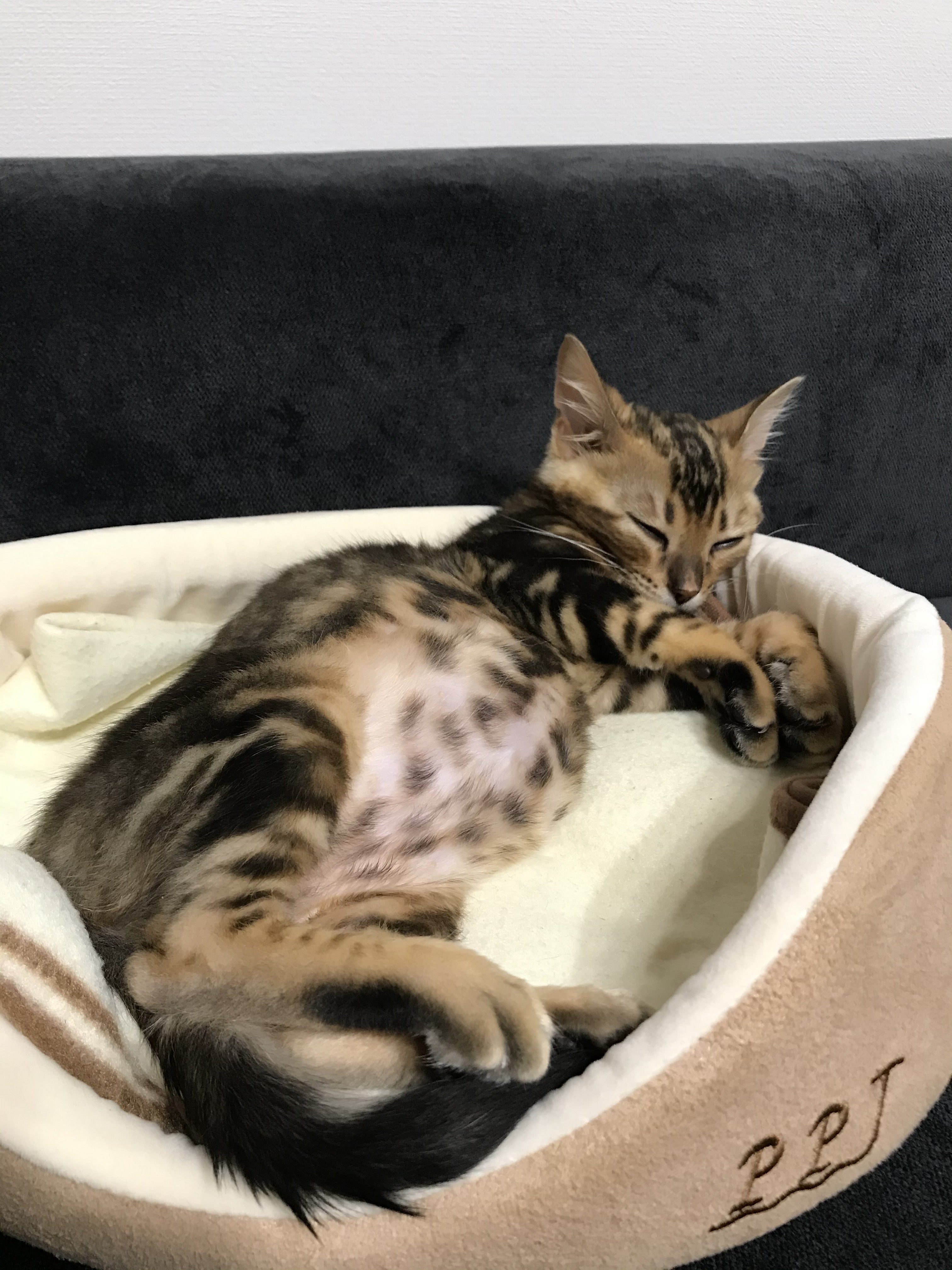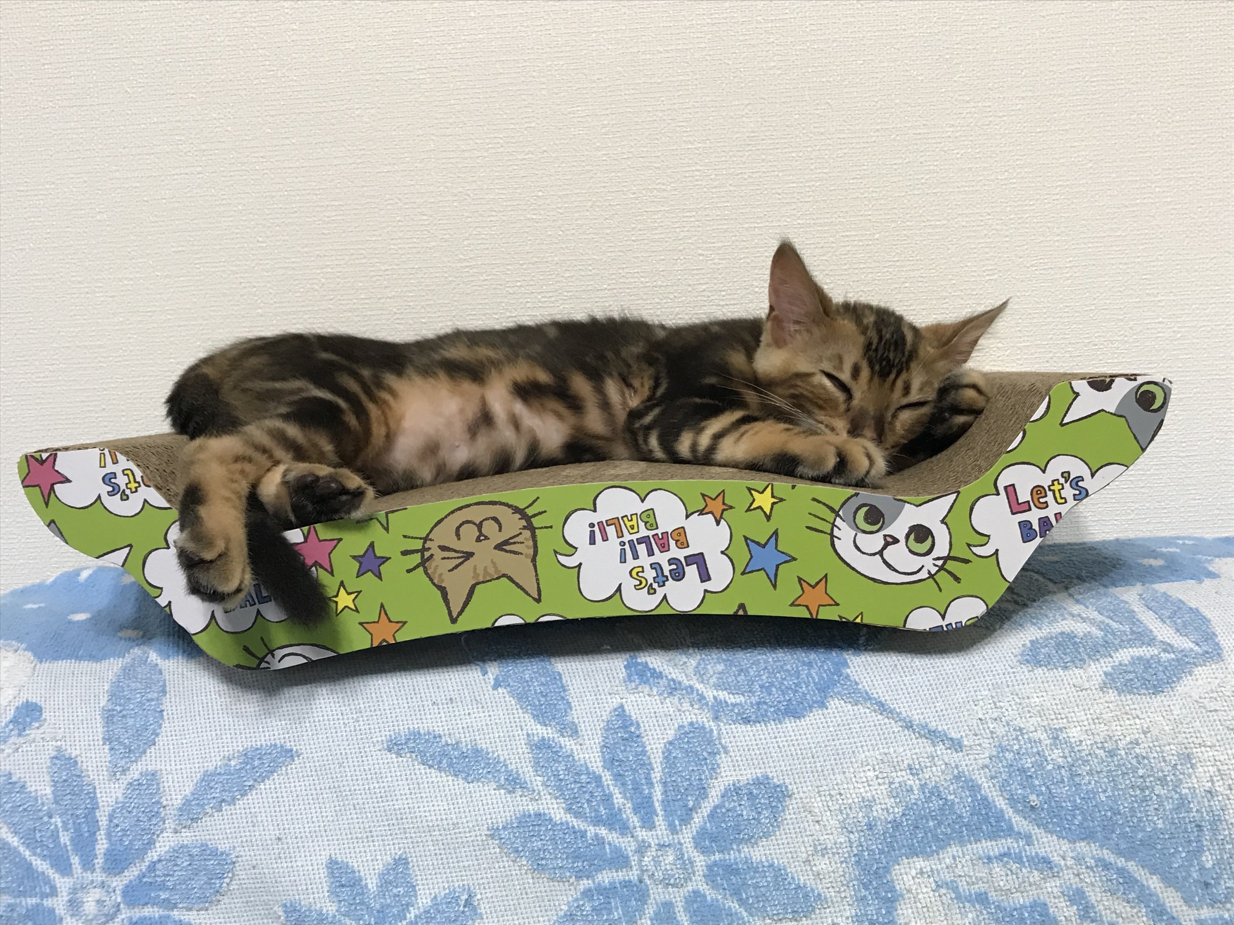 6/27~7/11の2週間レオンは順調に元気になっていきました。元気になった証拠に引っ搔き傷と噛み付き傷で毎日出血する私の手と足と背中と肩。ここ数年、擦り傷とは無縁だった我が家はマキロンすら存在せず、消毒液と化膿止めと絆創膏を買いに行きました。躾どころではなかったのですが・・・・レオンはテンションがマックスになると甘噛みじゃすまなくなります。テンションがマックスになると肩や背中に飛んできます。(そして爪でひっかく・・・)ぐったりしてた時より何百倍もましですけどね。傷物にされたので責任とって頂きたい。上の写真は夕食後。お腹いっぱい、で満足なレオン。病院から4日後、前回の検査結果(SAA)が出た、とお医者様からお電話。問題はない、との事。まぁ、問題ないならよいです。