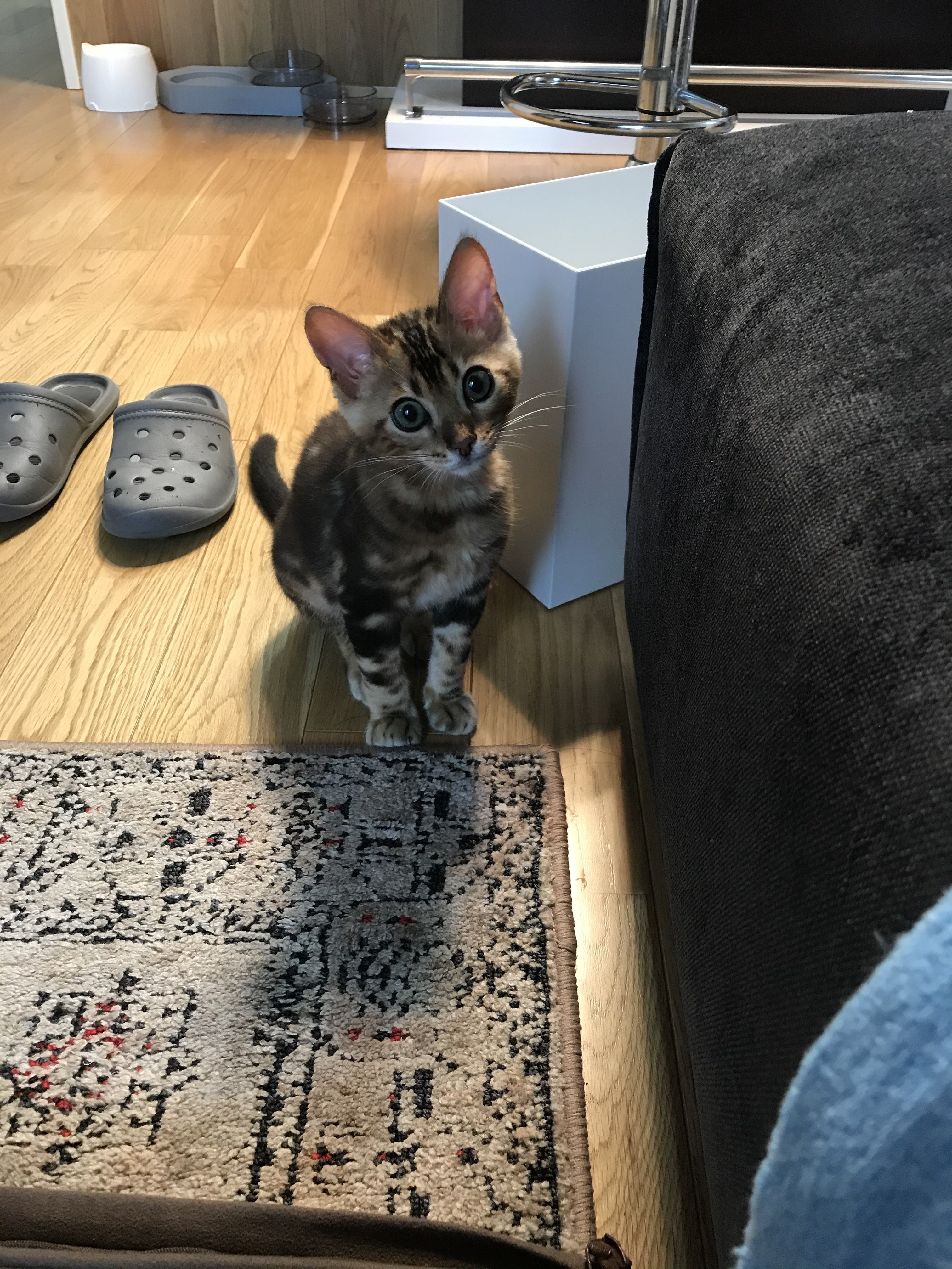 7/11 病院。血液検査レオン、超暴れる。先生は「大分子猫らしい動きをしてきましたね」との事。そうか・・・・・この大暴れは子猫の証拠・・・・?でも凄いぞ。怪獣だ。針刺さっている時にあんなに暴れて怖すぎるエコーでも暴れる。元気なのはよい事ですが、これは大変。ムティアンの投与量、また増えました。2週間毎に500g増えていくレオン。とにかく最近体重増えてます。元気になるにつれてカプセル投与も大変。投与の時間が毎日決まっているのですが、直前まで寝ていた場合は覚醒する前のどさくさに紛れて飲ませるので比較的楽。投与直前まで遊んでいた場合が大変。まず捕まえるのに苦労。次に口開けさせるのに苦労。口にカプセル入れるのも苦労。飲み込ませるのも苦労。何度指を噛まれた事か・・・・レオンにはわかる筈ないのだけど、いつもいつも「飲まないと死んじゃうんだからね」と言い聞かせてます。元気になって家を徘徊。お風呂場にも興味津々。でも水は怖くて一目散に逃げていく。