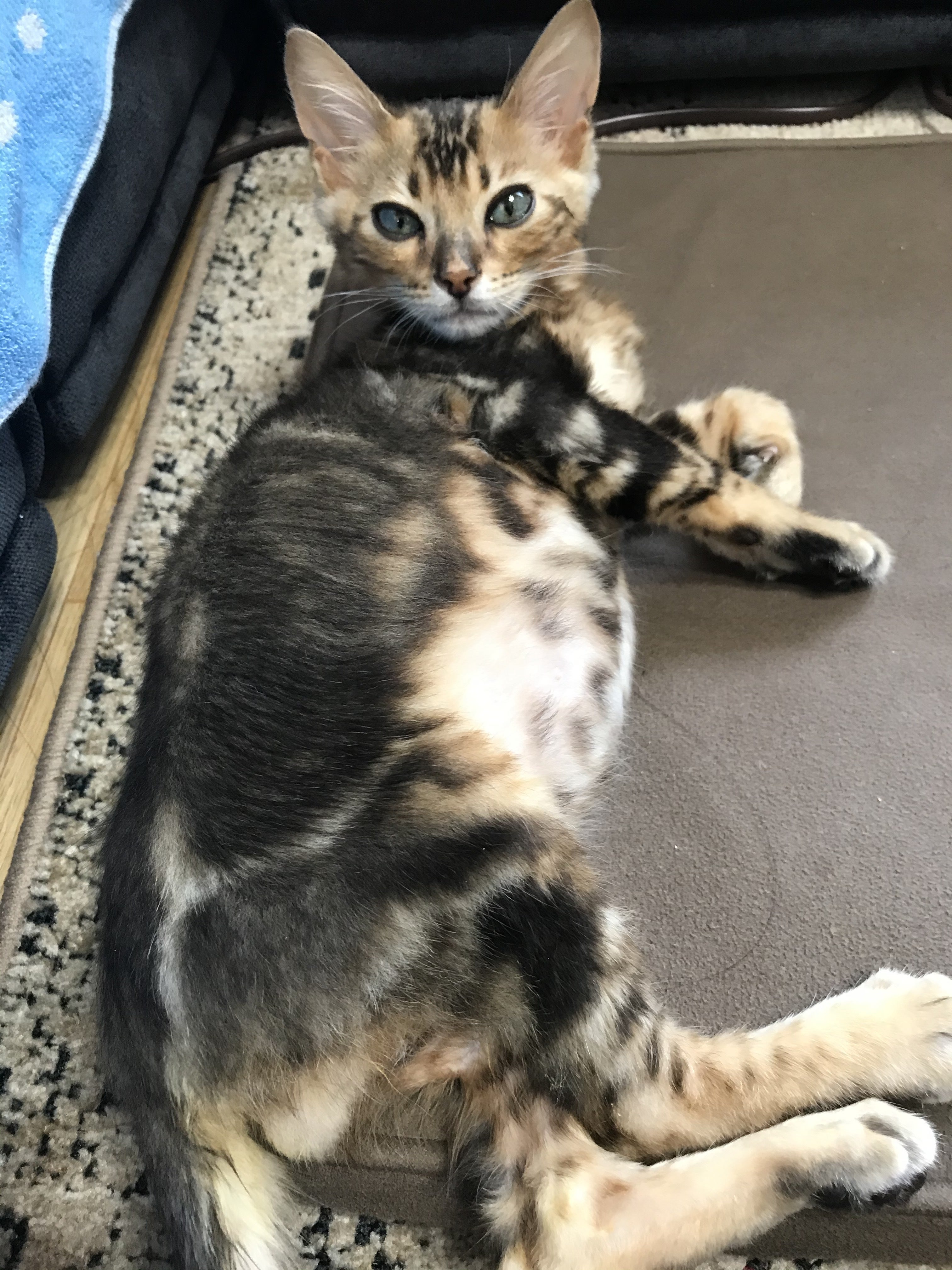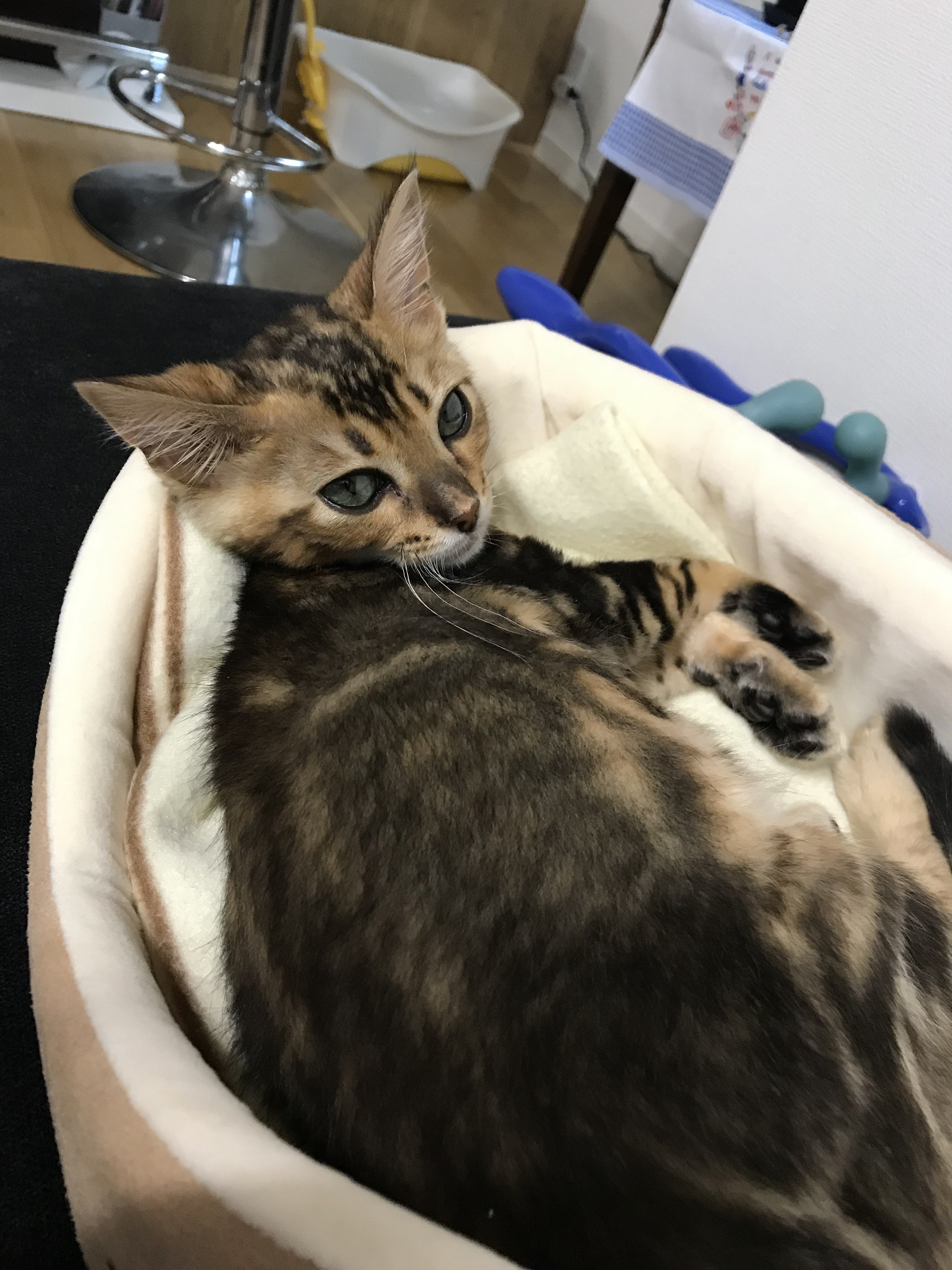 写真は腹水でお腹パンパンのレオン破裂しないか本当に心配。まず、新たに15名の方にご支援頂きました。ご挨拶が遅れてしまい申し訳ありません。ご支援頂けただけでも大変嬉しいのですが、暖かなメッセージまで頂き本当にありがとうございます。(前にも触れましたが)今回頂いたメッセージの中にもFIPで大事な猫ちゃんを亡くしてしまったというお話を聞きました。やはり、この病気は珍しい病気ではなく、とても身近なものと感じました。現在は非認可かつ、保険が適用外なのでとても高額ですが(8/6現在、一日のお薬の料金は税抜き7200円です)お薬が処方されますがこれは最近の事。悲しい思いをしている方がたくさんたくさんいる事を改めて認識致しました。ご支援頂きありがとうございます。レオンの元気な姿を報告できるように尽くしたいと思います。また、すみません。残り10日切ってしまい、報告ペース上げていきます。この活動報告は・・・・期間終了してもアップできるのでしょうかね・・・後で調べておきます。このクラウドファンディングの期間を杜撰に決めてしまい・・・・・後10日ですと投与期間終了前で完了してしまいますね。活動報告だけでもアップが続けられるのであればご報告いたします。うー私ダメダメだ。。。。レオンにも詫びちゅーるしないとかな・・・・。では、報告です。文字がいっぱいでごめんなさいね。↓↓ ↓ ↓ ↓ ↓ ↓ ↓ ↓ ↓ ↓ ↓ ↓ ↓ ↓ ↓ ↓ ↓ ↓ ↓前回の続きになりますが、経過報告です。今回から、本格的に治療がはじまりました。前回も少し触れましたが、ムティアンは空きっ腹で投与します。ですので、前後一時間は食事や他のお薬はNG水は大丈夫。お薬はカプセルをそのまま飲ませるか、中身を出してちゅーるなどに混ぜで食べさせる。カプセルで飲ませる場合は喉に張り付かないように投与後お水を飲ませる。(このカプセルすぐに溶けるようになっているのかちょっと濡れただけで張り付きます。カプセル飲ませるのに失敗して吐き出してしまうと指に張り付いて投与が大変)また、投与後に吐いてしまう場合、吐いた時間によって再投与が必要です。(30分以内では全量、30分以上であれば10~50%、1時間以上であれば投与なし、といった感じ )そのため、最低でも1時間はレオンにウザがられても、嫌われても監視しなければなりません。ムティアン投与後、特に吐いたりもせず一時間経ったので母にレオンを頼みお風呂に入っていたのですが・・・・母から呼び出しがかかりました。シャワー浴びてて、シャンプーで頭 泡だらけという凄い状態で。レオンが突然。お尻から突然、黄色い液体を大量に出したと・・・・・・・・・・・・よくわからん。詳しく聞くに・・・・吐いたわけではなく、おしっこでもなさそう。うんちでもなさそう(レオンは、おしっこやうんちだと臭いが結構します。)無臭で、レオンも落ち着いて普通に座っていたのだが、トイレに行く素振りもなく、ドバっと出た。母親もレオン自身も吃驚したらしく、2人(1人と1匹)でしばらく固まってしまったらしい。という事らしい。急いでお風呂から出ましたが、そのころには既に母親が片づけをしてくれており、現場は抑えられませんでした。黄色い液体は病院にもっていくために採集済み。えらい。確かに黄色の所もありましたが、白っぽい所もありました。母親の推理だと本日昼間に病院で腹水の抜水したのですが、その時見た液体の色に似ていた為、腹水。その後も数回、お尻から黄色い液体が少し 出ていました。レオンの様子には変わりがないのがせめてもの救いです。念のため、寝るベットにタオルを引いて就寝。謎。結局何かわからず。翌日。一回の投与でこんなに?と目を疑う感じに元気になってました。だって自力で歩くの。ご飯にも興味を持ってくれ、少しだけだけど口に含んでくれました。粉砕したドライフードをお湯でふやかしたものにパウチを混ぜたものですが、昨日はちゃおチュールの水和えのみだったので大進歩!!!ムティアン凄い。この時に嬉しさと安心感ったらない。レオンが心配だと家の掃除や家事も手につかず・・・・・家がしっちゃかめっちゃかなんだけど、朝ごはんを食べてくれただけで洗濯する意欲がわく。ただ、油断は禁物。昨日の黄色い液体が気になるため、病院に電話してみます。事情を説明した所、一度病院に、という事なので仕事を早々に片づけて病院に飛んで行く。テレワークでよかった。病院にて。なるべく詳しく状況を説明する。黄色い液体を拭いたタオルを持参すると、先生がリトマス試験紙みたいな紙で調べてくれました・・・・・・結果。「うんちですね」え?吃驚しました。無臭だったのと液体が大量だったのと色々。腹水がお尻から出ることはまずない、との事。だってレオンも吃驚してたのに??と言い訳しましたが、これは「うんち」らしいです。確かに最近ご飯たべれてないのでうんちが液体になるかもしれないけど・・・