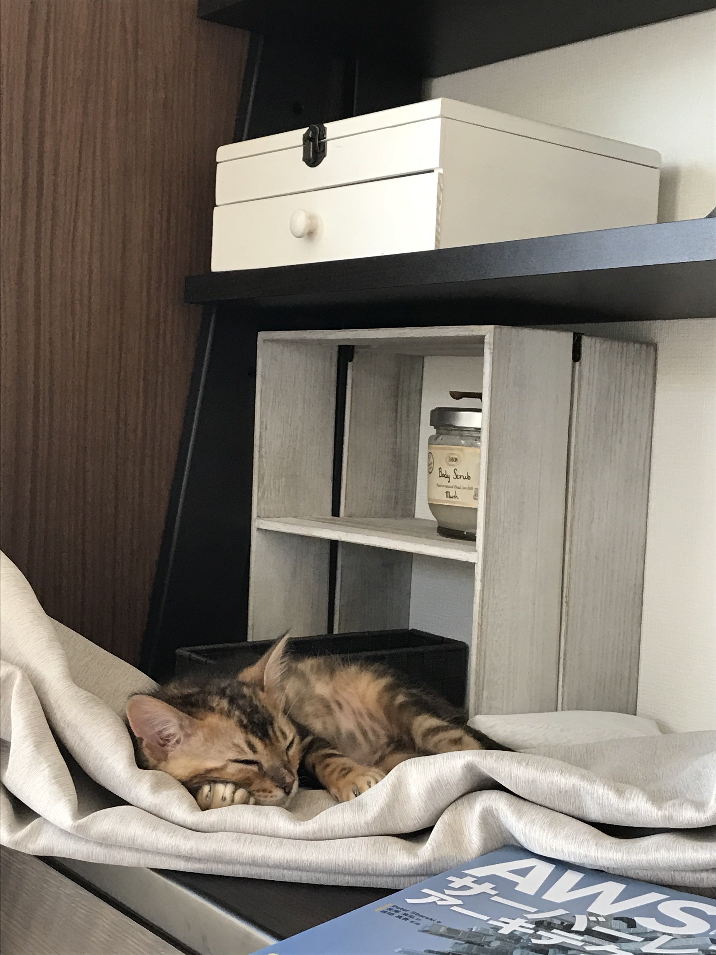 こんにちはご覧頂きありがとうございます!そして、コメント頂きありがとうございますSNSで拡散した方がよいとのアドバイス、ありがとうございます!こちらは承認して掲載してしまってもよろしいのでしょうか??勝手に掲載してしまってもよいものですかね??SNS、私は一応OL(という言葉は古いのだろうか)ですがTwitterはゲームのモンストがツイートしろ!と言ってくるミッションしか投稿していないボッチなので果たして意味があるのだろうか??これならば面倒臭がらずにインスタとかフェイスブックとかやっとくべきだったか・・・・・今回、ご支援いただきたくクラウドファンディングを行っていますがどうも友人知人には言えないでいます。言ったら相手も気を使ってしまうと考えてしまうのですが・・・・皆様はどうしているのでしょうか?不安な事だらけです。レオンの経過報告その3です前回お医者様にみて貰いましたが、漠然とした不安はぬぐえずそれからまた数日。ご飯は食べるは食べるのですが、少しずつ残すようになってきました。それでも便は毎日出ているので様子を見ることに。毎食、毎食、よく食べた!残した・・・と一喜一憂する日々が。この時はまだ、レオンがそんな思い病気にかかるとは夢にも思っていませんでした。季節の変わり目で夏バテなのかも、とエアコンを入れてみたり。風邪かもしれないとタオルをかけてみたり。ご飯が嫌いなのかも、と色んなパウチを買ってきたり。この頃の写真はあまりないのです。文章ばかりで申し訳ありません。6/4 仕事中、膝で寝てしまったレオン。酷い恰好。あまりによく寝るもんで、起こすことが出来ず。辺りは真っ暗。電気も付けられず、暗い中仕事をしていました。6/8元気がない、そして、ご飯も食べないレオンにご主人の不安が爆発。夜21時過ぎ、夜間診療で病院へやはり病院で出された食事は食べる。病院で食べた大人用のご飯。先生曰く、少し食べずらそう。お腹も少し張っている。注射打つから様子を見てみよう、との事。大人のご飯が好きなおませなレオンかと思った。(ウチのロイヤルカナンのパウチはあまり食べない。)6/12体調が改善されないため、病院に。X線とエコーを実施。この頃からお医者様は腹膜炎を疑いだす。ただ・・・・X線は子猫の場合真っ白になってしまい全くわからないとの事(何故やった・・・)写真をみせてもらったけど確かに真っ白。エコーでお腹を見たけど腹水はたまってないとの事。毎日便は出ていても、大きな堅い便が溜まってる可能性もある、との事。結局「わからない」という結果に・・・・・ただ、明日も病院に行くことに。腹膜炎の可能性もあります。最悪の場合もある、という事を通達される。病院では泣かずに済んだ。ただ、ここで初めて「本当にレオンとさよなら」するかもしれない、と感じ不安が大爆発します。。。この頃の事は思い出したくないな・・・・・だって泣いてしまう。。。。