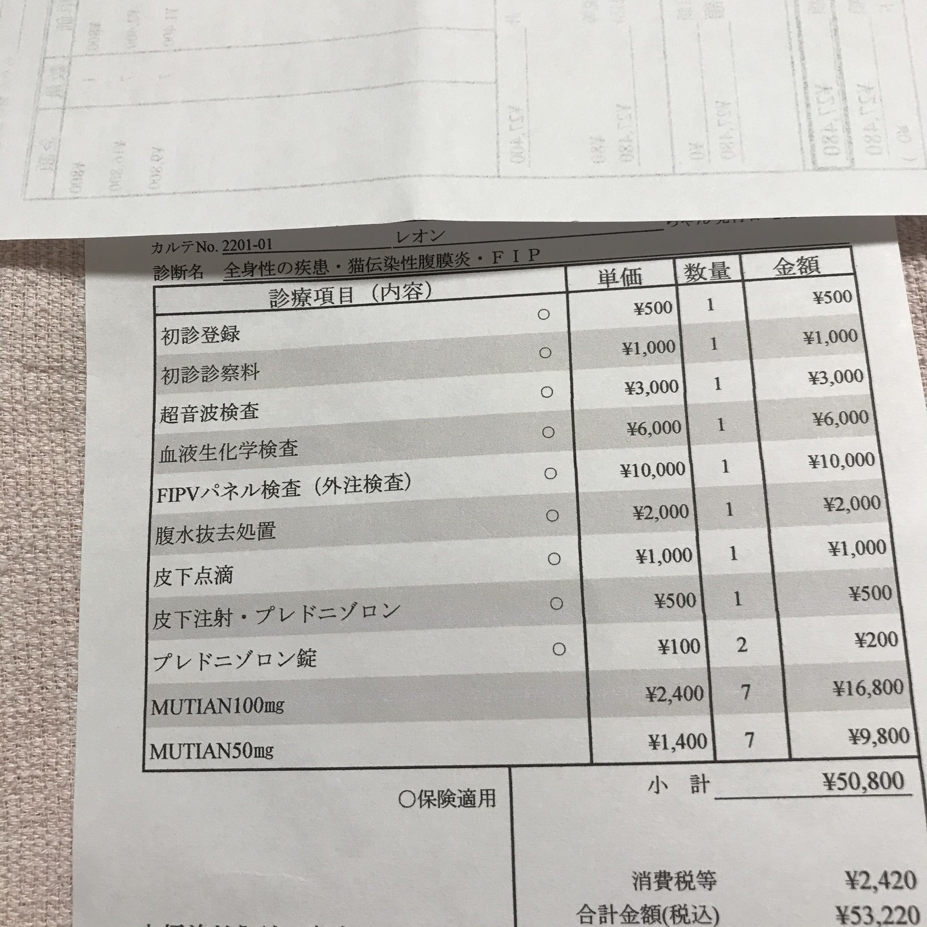 FIPの可能性が高い、という事で外注検査の結果を待たず、MUTIAN投薬開始。