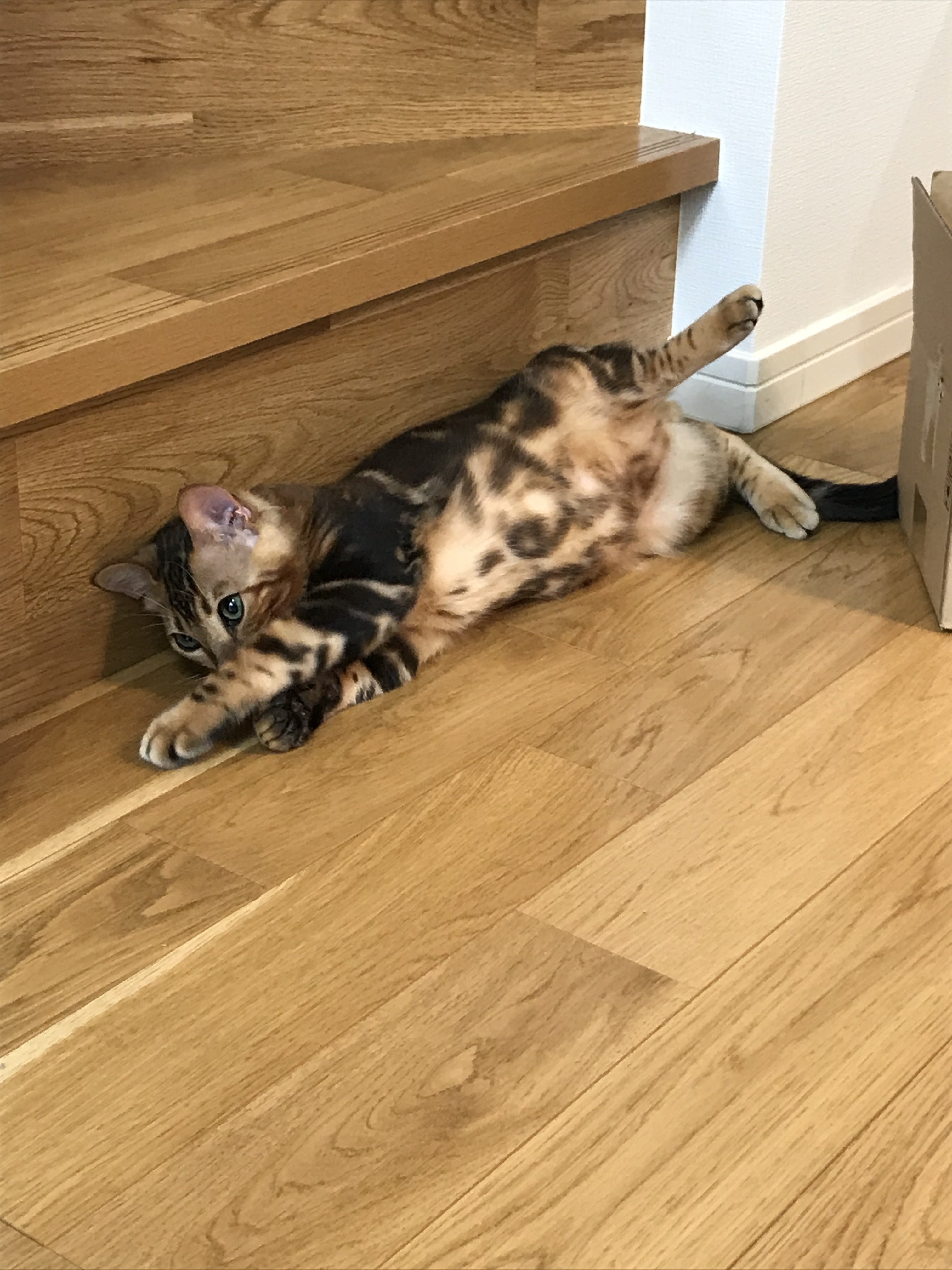 2020/10/25 15:00レオンの写真を漁っていると、ごろんと寝転がっているものばかり。観察すると、とことこ歩いてゴロン。ご飯を食べてゴロン。ゴロンとしながら毛づくろい。子供の内からこんなにゴロゴロしててよいものなのか?猫を飼うのが初めてなので、運動量が足りているのかどうかがわからないですが・・・・ただ・・・・恐ろしく暴れん坊でもあるんです。猫じゃらしは基本、使い捨て。以前友人が遊びに来た時に買ってきてくれた立派な猫じゃらしはものの3分でバラバラになりました。噛む力が半端ない!9/5ムティアン投薬が完了しました。8月上旬にAG0.7以上あり、8月中に0.6まで落ち込み、また徐々に回復して9/5には0.8になりました。体重も2.9→2.4→2.8と、レオンに取っては負担の大きい1カ月となりました。血液検査、あとは外注検査2つこちらの結果で再発がなければ投与は完了し、3カ月の経過観察となります。先生は投与完了後、2,3日で食欲不振などが起こったら再発の可能性があるのですぐに病院にくることという事を言われました。この数日間をビクビクしながら過ごします。レオンは順調に回復しているものの、うんちはやはり1.5日に1回のペース前回の二の舞にならないかがとても不安です。ご飯を変えたり、友人に「乳酸菌が最強 」と聞き、乳酸菌入りの缶詰と共にドライフードをあげたりしています。便が硬くない、たっぷり出る、という事から1.5日に1回がレオンの通常なのか?と思う事もあります。が、実際の所よくわかっていません。。。。再発の有無にかかわらず、また、先月体調を壊していた事もあり1週間後に再検査です。何事も内容祈りつつ、1週間を過ごしました。レオン自身は嘔吐もなくなり、元気も戻り、食欲も取り戻し、体重の増加に勤しむ毎日。私と母は再び 、じゃれてくるレオンの爪や歯で流血続きの毎日になりました。 もっと見る