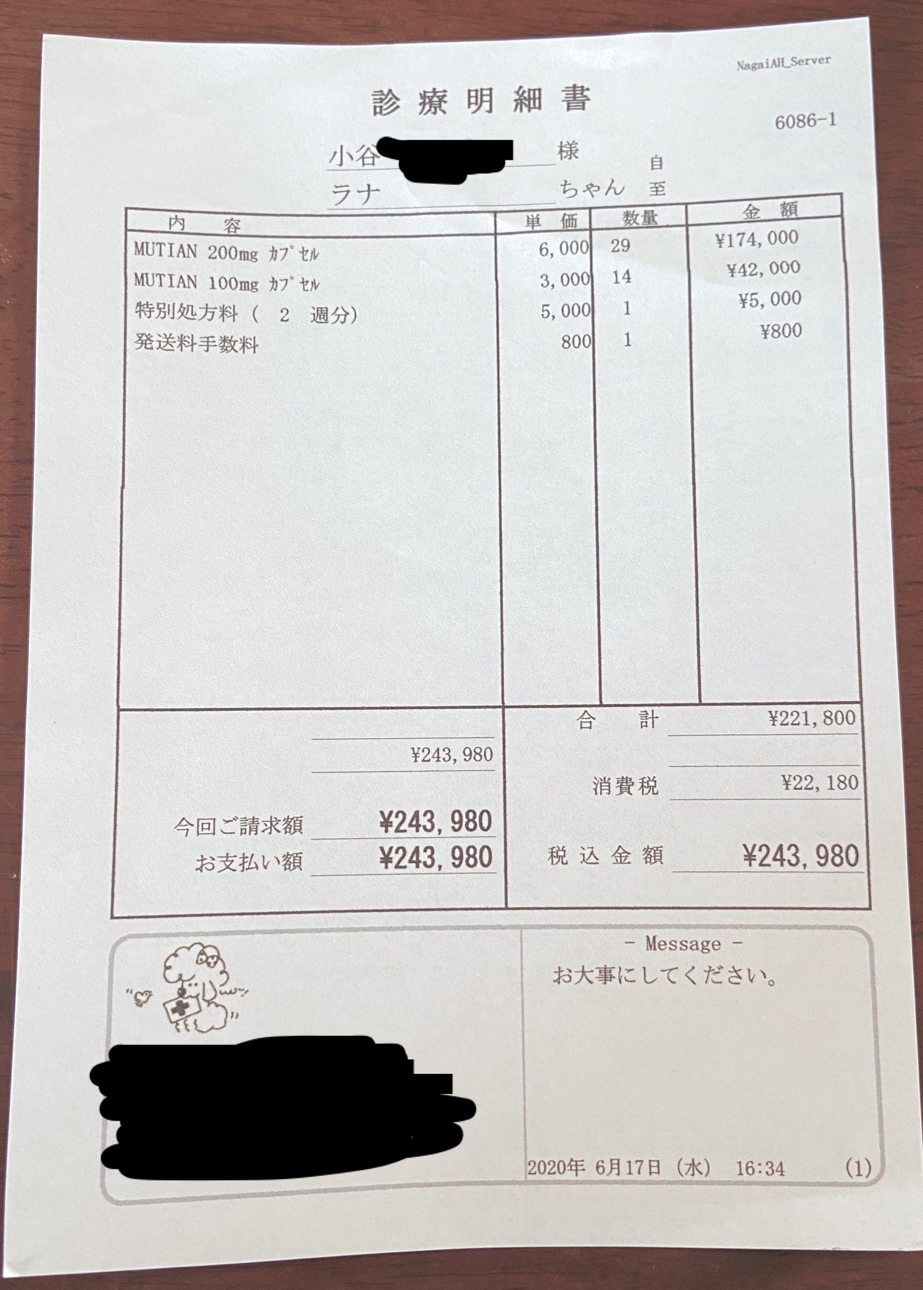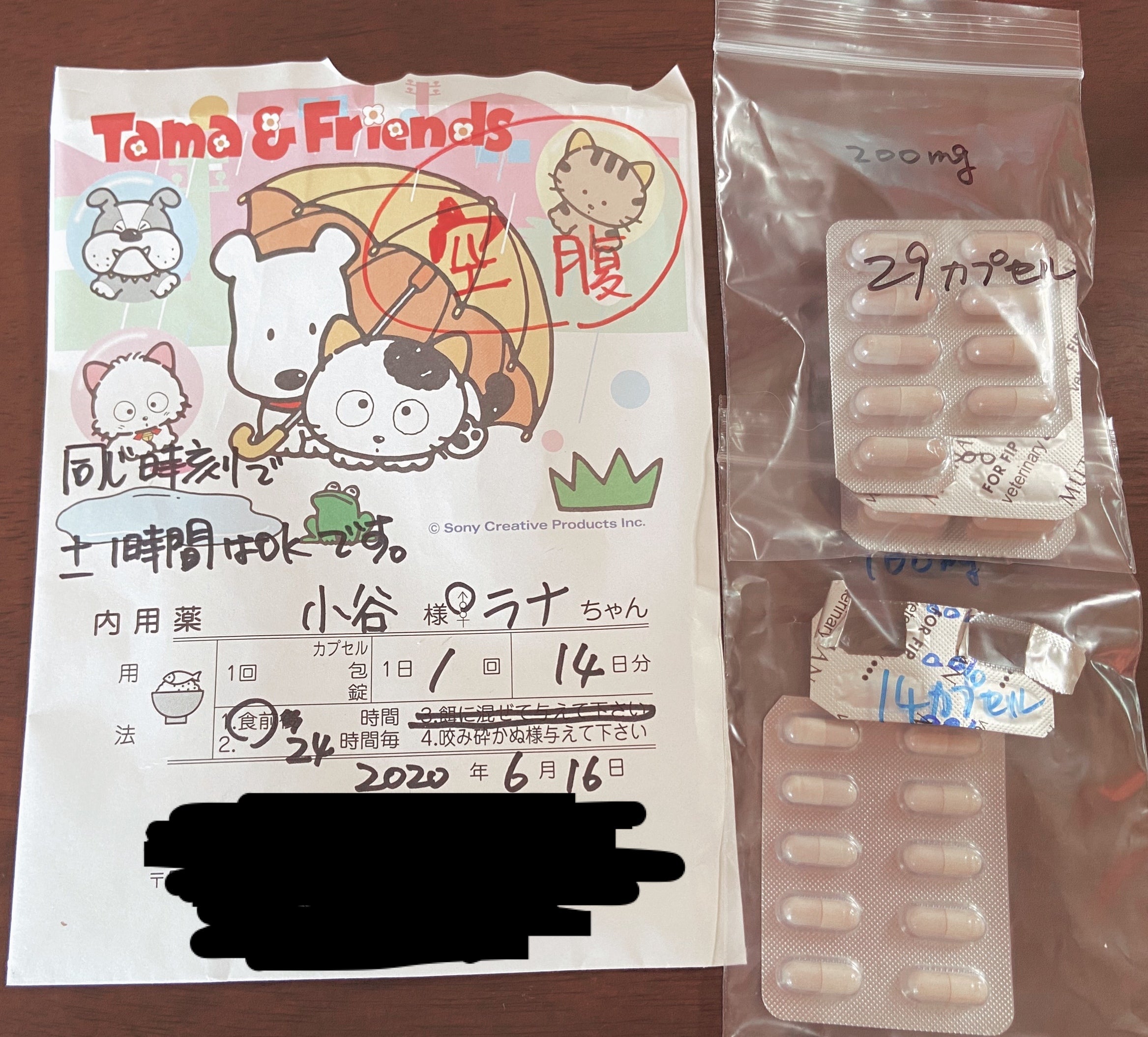 投与開始直後は、体重2.25kgだったのですが、嬉しいことに2.6kgまで増えました。それに伴い投与量が400mgから500mgに増え、金額も前回よりさらに46200円増えました。