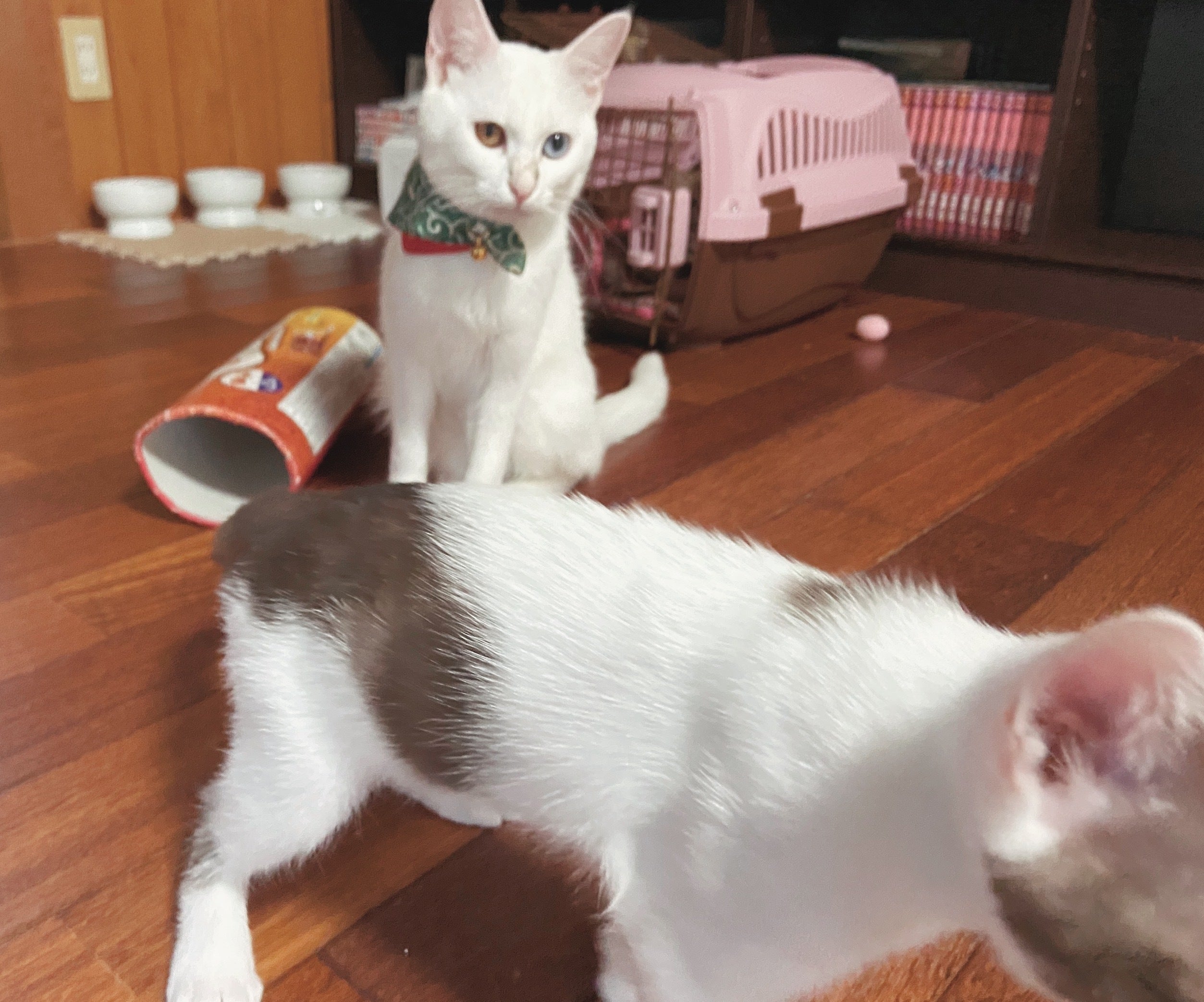 スマホを見ると目をそらすラナちゃんです。お顔が丸いです。