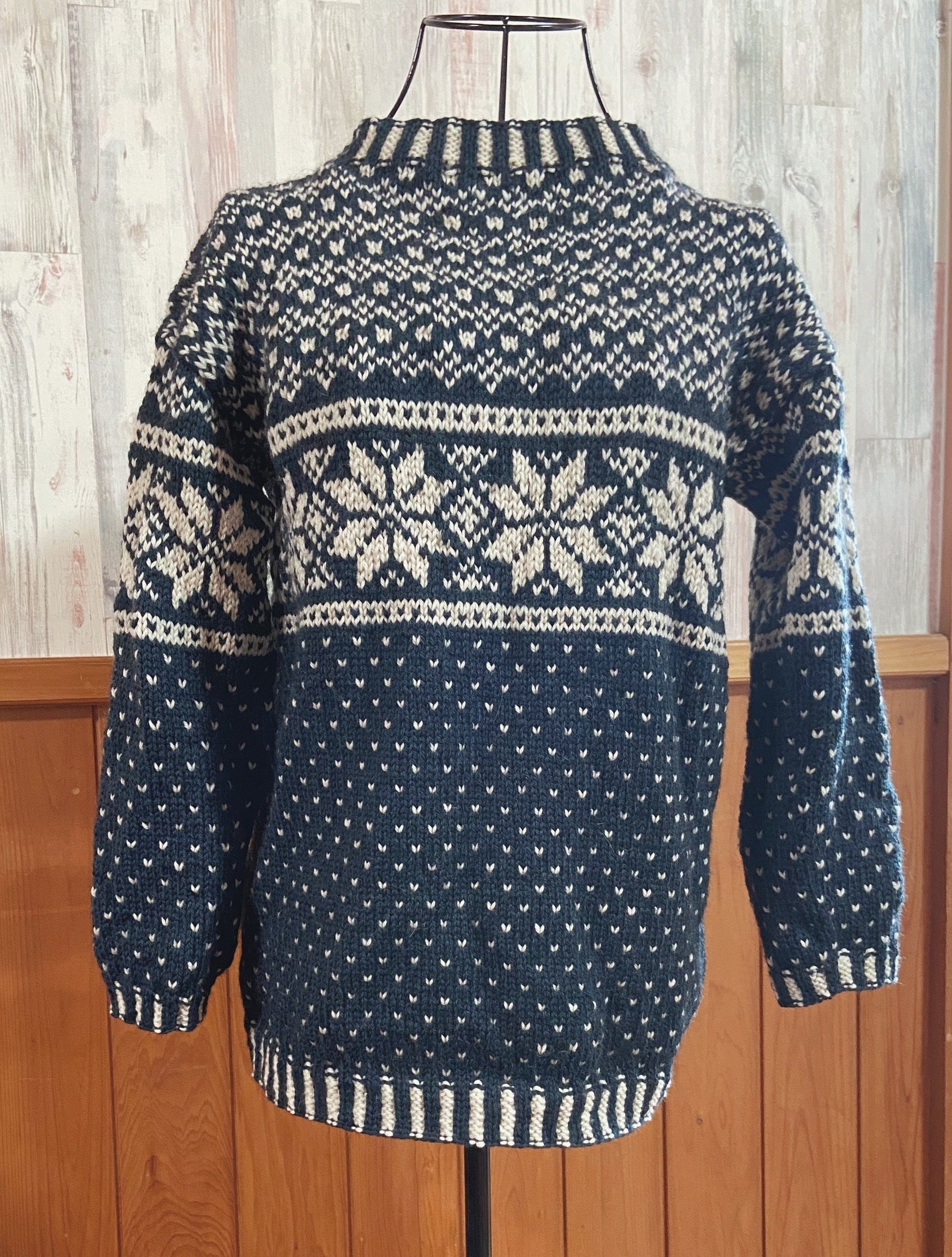 母の手編みのセーターになります。画像では分かりにくいかもしれませんが、お色はモスグリーンとなっております。
