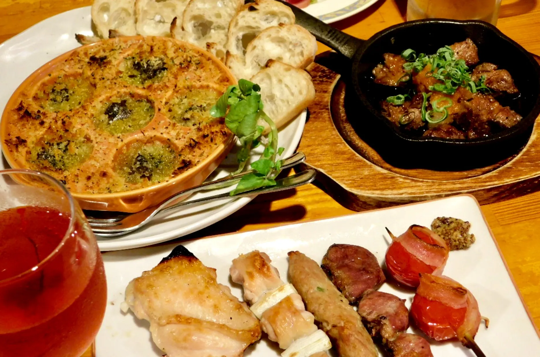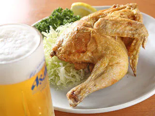 バターとにんにく醤油で仕上げた中落カルビのミニステーキや、新潟スタイルのカレー味の若鶏の半身揚げは、冷えたスーパーコールド生と相性抜群です。