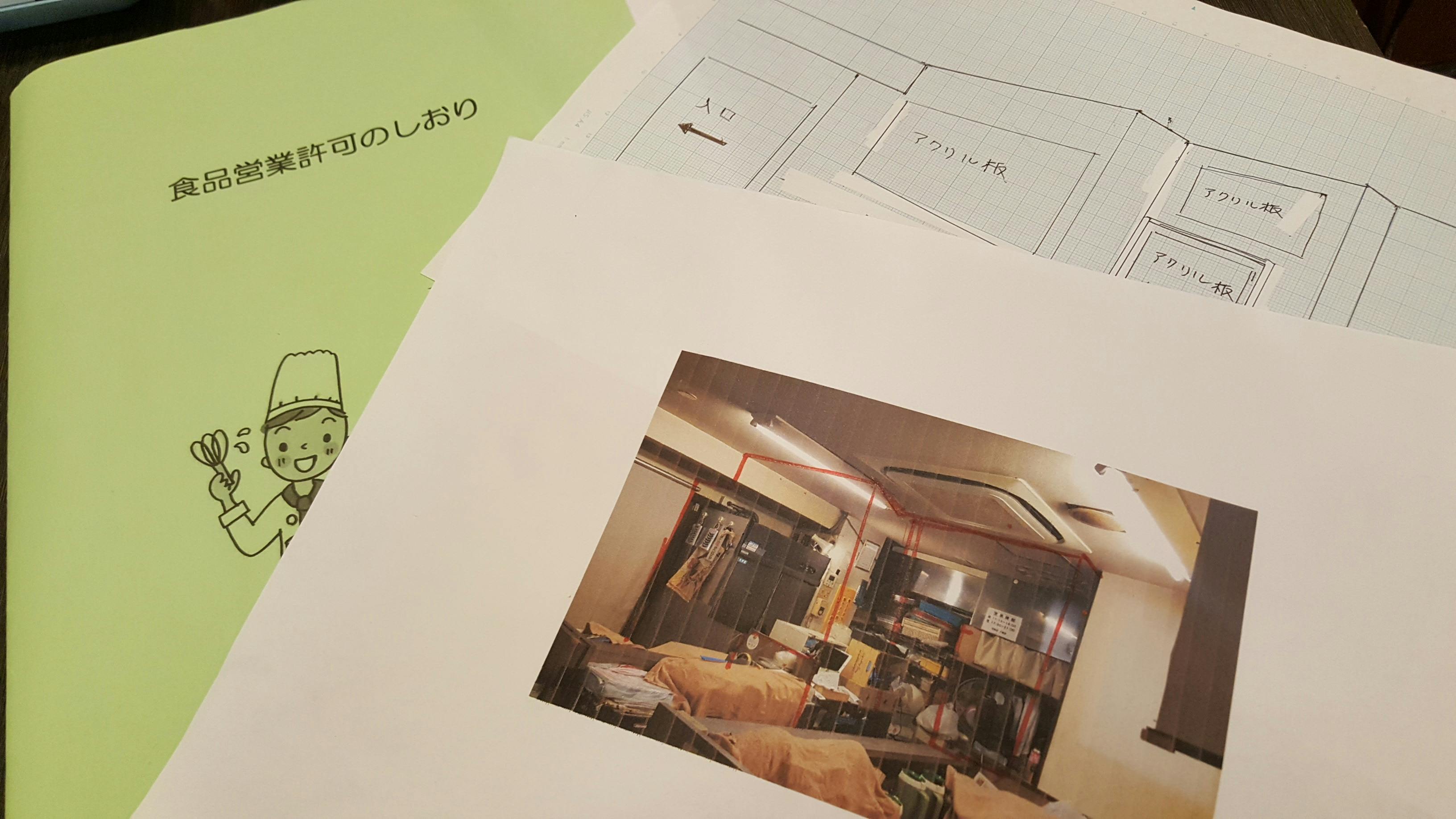 1つは製造許可施設とするための方法として、大工さんからいただいた厨房と客席を仕切る方法について、具体的な事項の質問や確認。