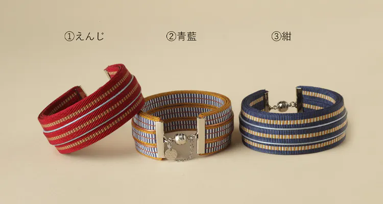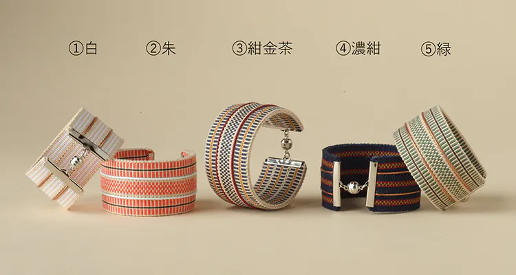 〈参考〉モデル着用色:③紺金茶 女性モデル着用サイズ: M(内径 17.0cm )モデル手首まわり約16.5cm