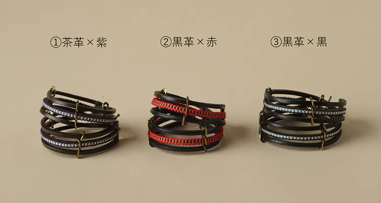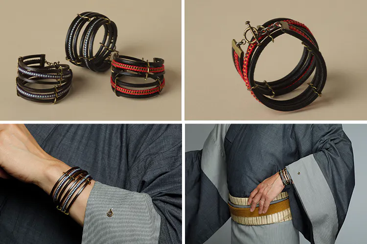 甲冑鎧(かっちゅうよろい)をイメージした本革と真田紐の2連ブレスレット