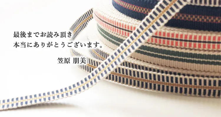 私自身、貴重な真田紐を使わせていただく立場ですので、この想いはしっかりと持ち続けていたいと考えています。また、様々な災害やコロナウィルスなどでモノのありがたさを考える機会が増えてきました。