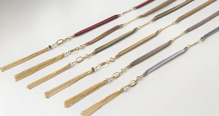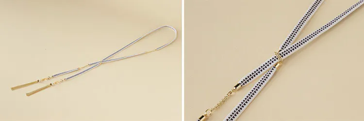 6ミリ幅(2分幅)の絹真田紐とチェーンを合わせた胸の前でくるっとクロスして留めるラリエット。