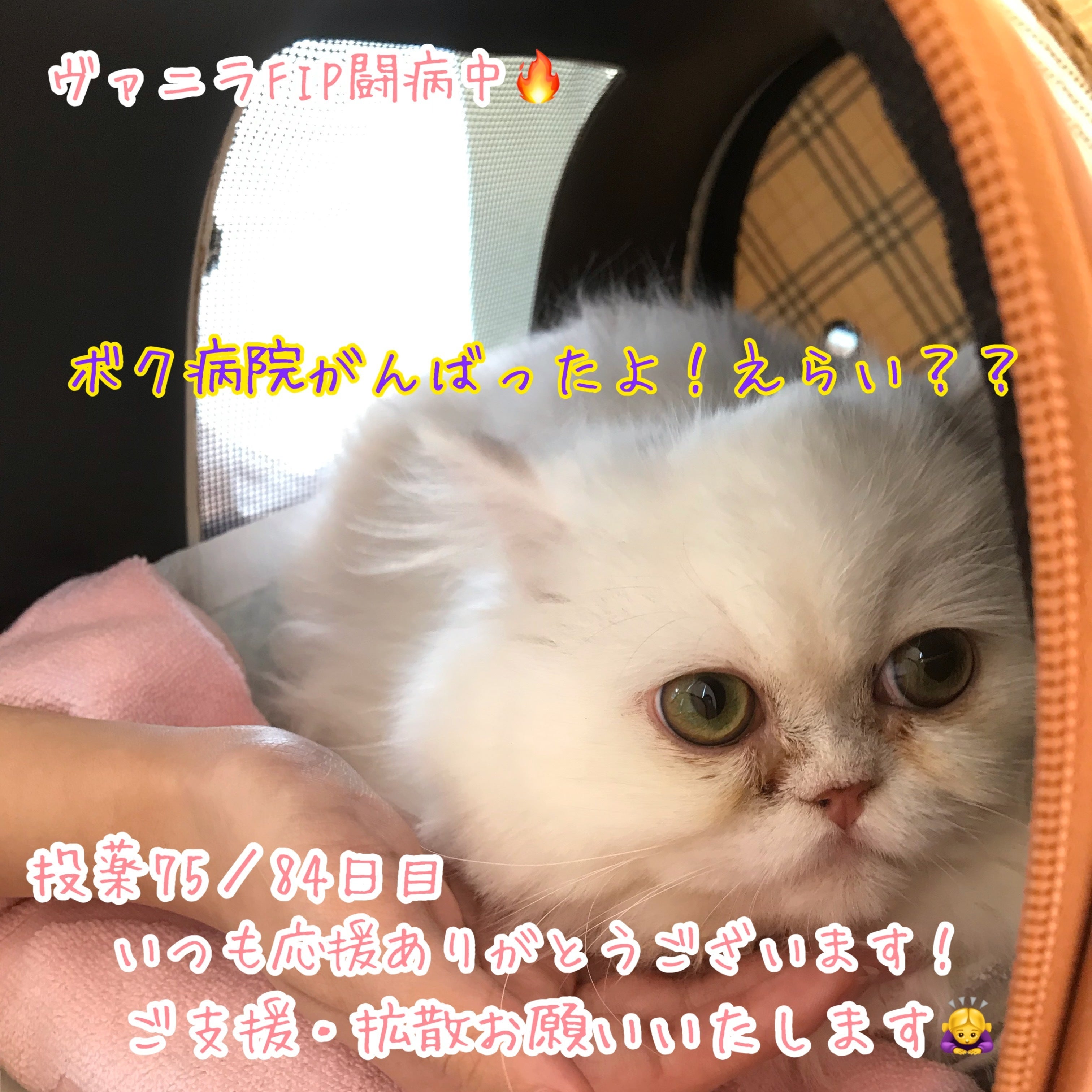 FIPと診断された絶望の日から2ヶ月半、ヴァニラと私達がここまで来れたのはひとえに皆様のおかげです。本当にありがとうございます。