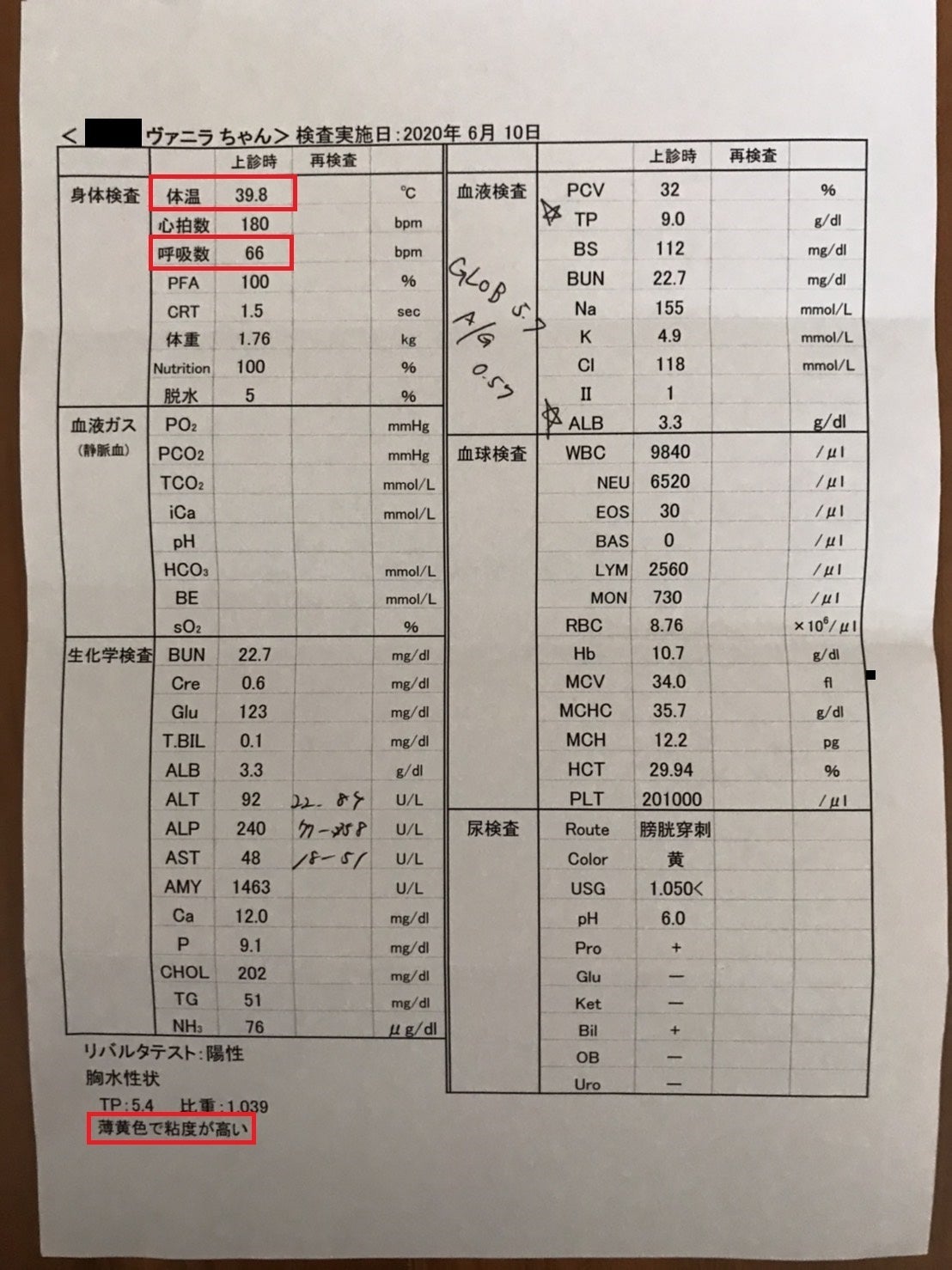 ・6/11午後、FIP治療に対応している病院を受診し再度検査。「FIPのウェットタイプ初期」と診断