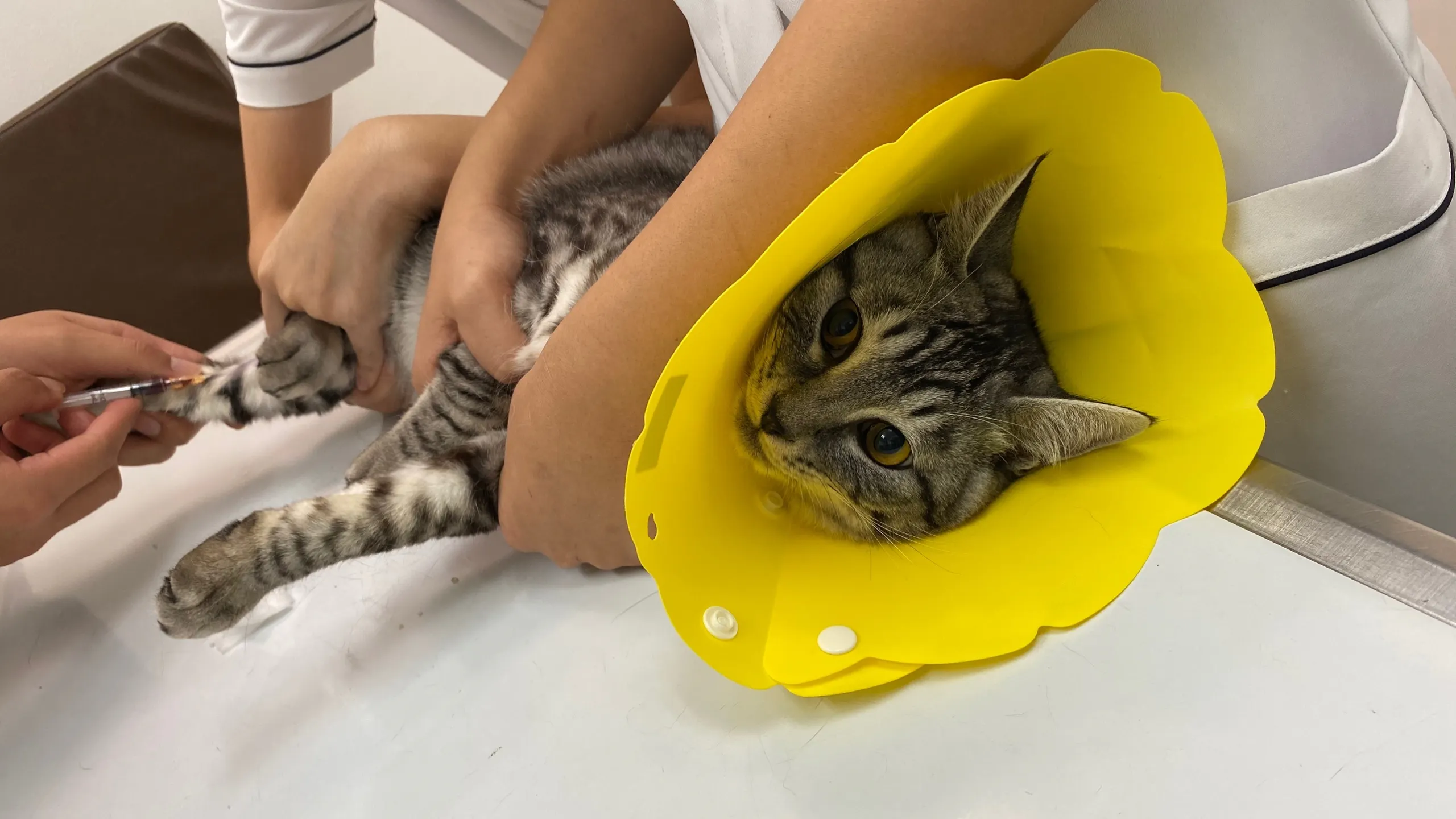 今回は、アレルギーで通院中のお姉ちゃん、ムウと一緒のキャリーに入れて連れて行きました。