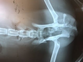 先生は見てすぐに「骨折してる」と仰い、レントゲンを撮ると骨盤が骨折していました。「交通事故だよ」とも仰いました。