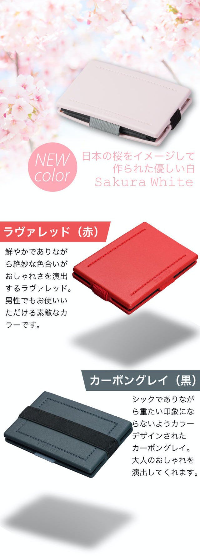 A:今回新たに発売のSakura whiteの他に、ラヴァレッド(赤)とカーボングレイ(黒灰色)の計3色ございます。