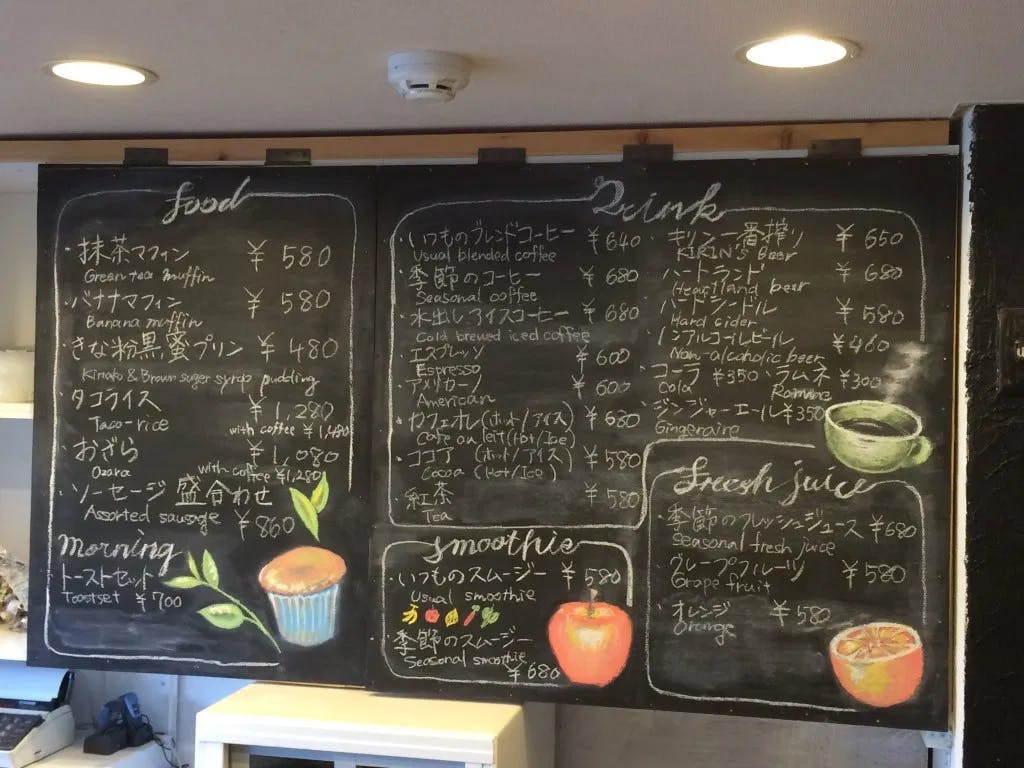 河口湖の景色が望める店内で、「ペーパードリップ」で淹れたこだわりのコーヒーや山梨県産の果物を使用したスムージーなどお召し上がりいただくことができます。