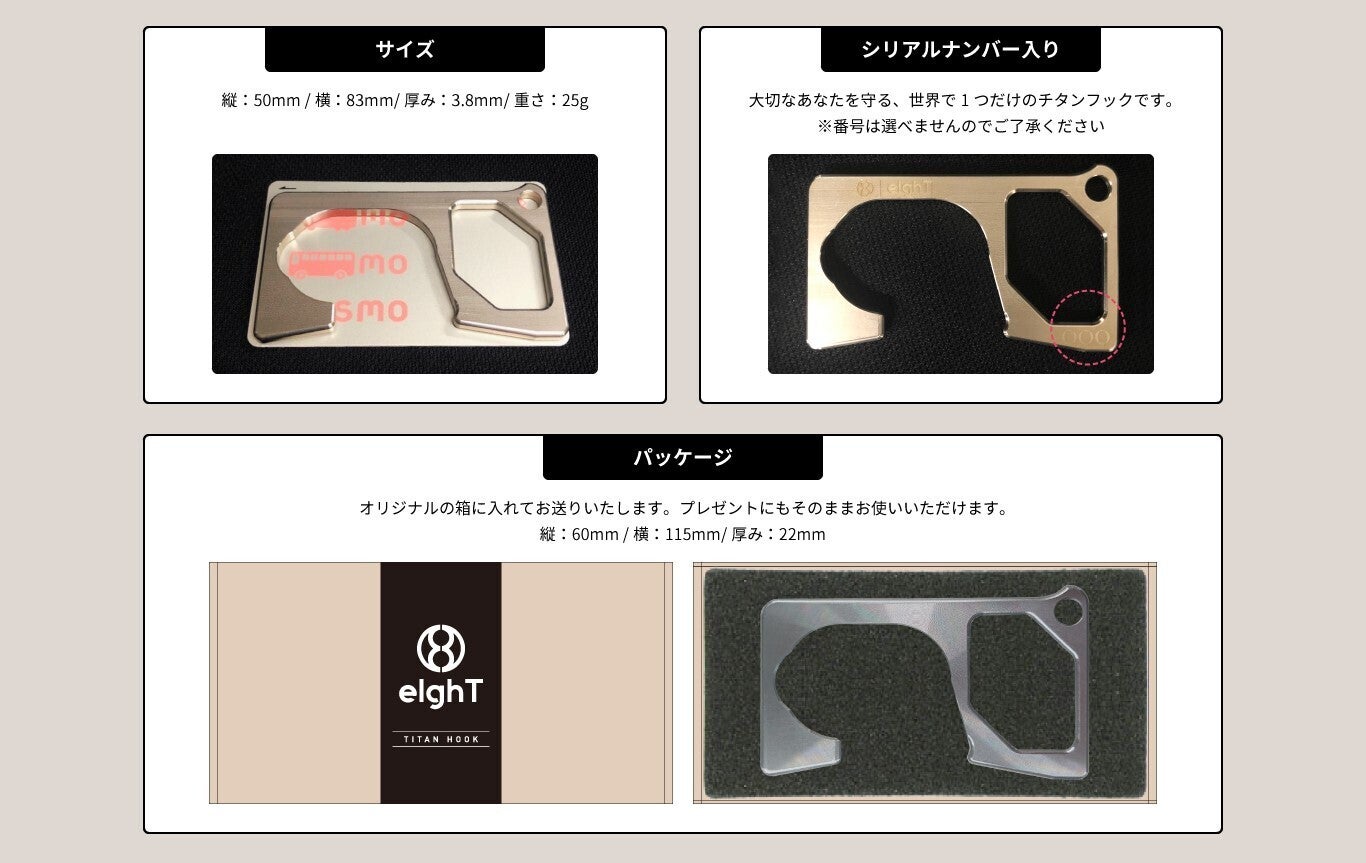そんなeIghTのブランド第一弾として誕生したのがこのチタンフックです。