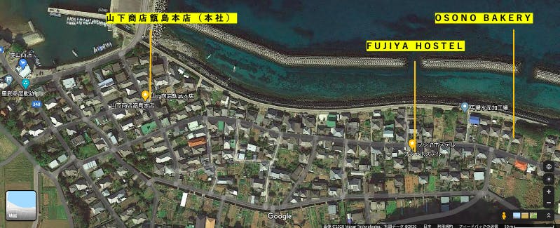 里集落のはずれの、大きなあこうの木の下にある平屋の一軒家で、木のトンネルを抜けると海まで歩いてすぐの海辺に建っています。また、私たちの運営しているFUJIYA HOSTELや山下商店甑島本店なども半径 400メートル圏内にあり、歩いて回ることのできる小さな集落に点在させています。