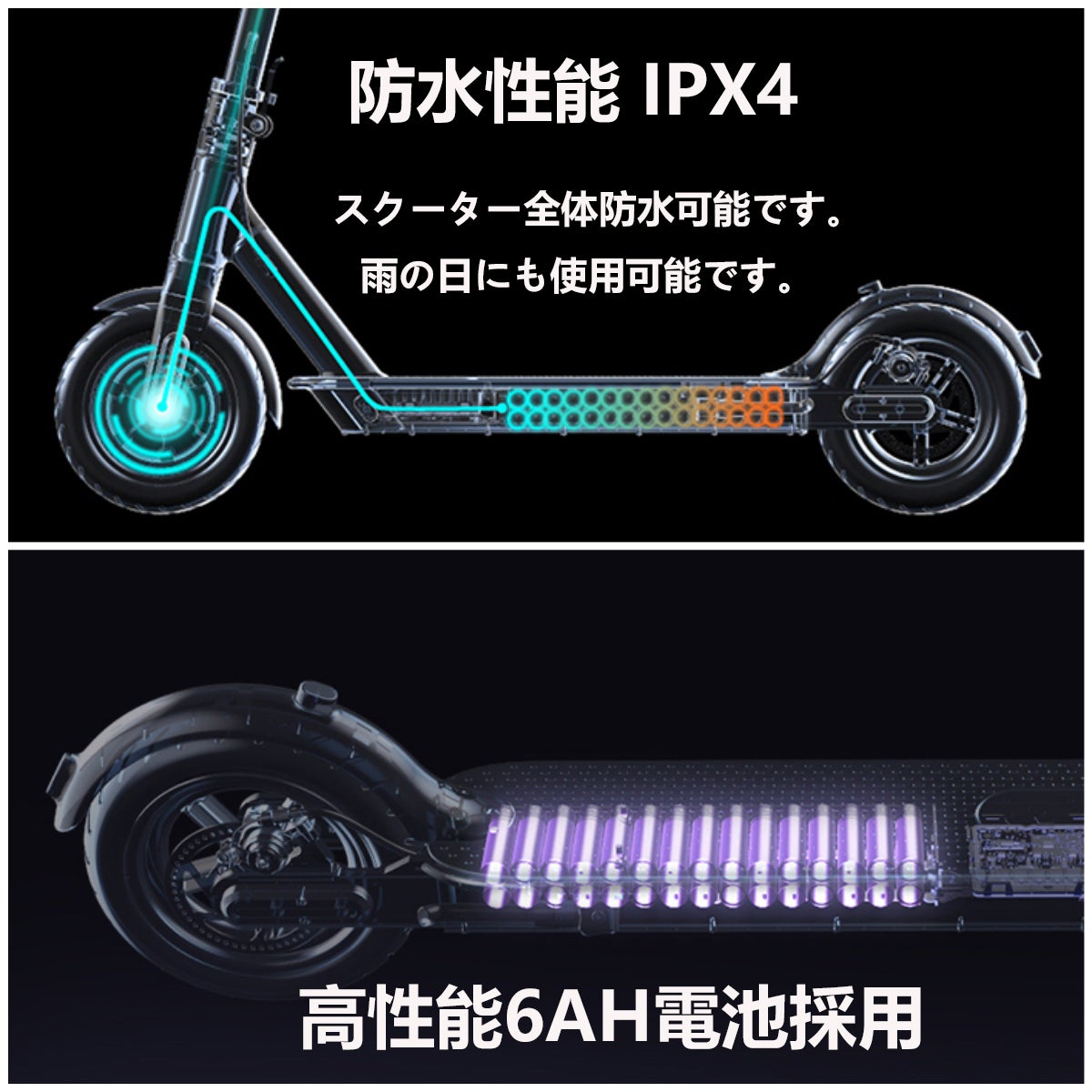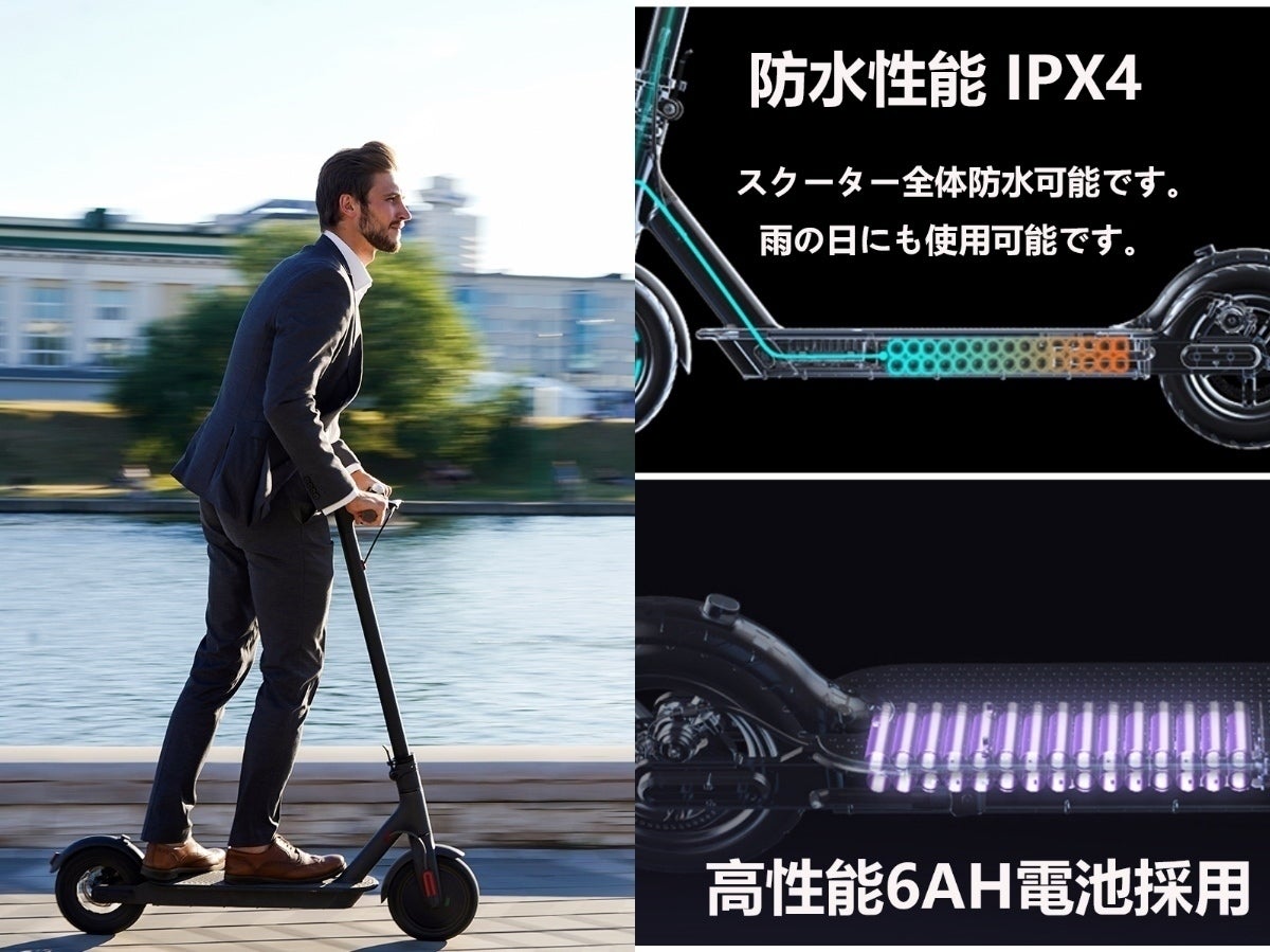 高性能6AH電池を採用し、スクーターは全体防水可能で、雨の日にも使用可能です。