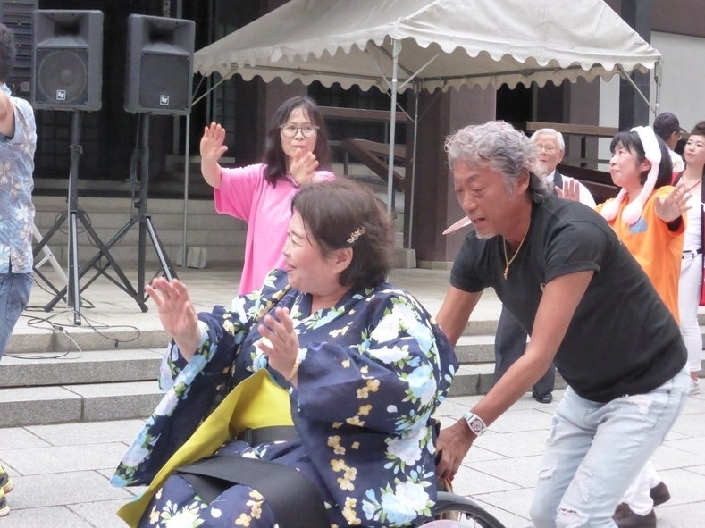 車いすの盆踊りチームの人達と手を取り合い踊り、そこから一人、また一人。。。と
