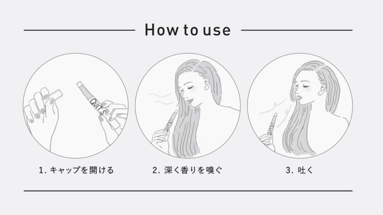 QUIT.S(クイッツ)は、「喫煙者の喫煙行為自体に対する依存=行為依存」に着目して開発した、タバコを止めたい・タバコを吸う本数を減らしたい人のための、タバコのような香りの携帯アロマフレグランスです。