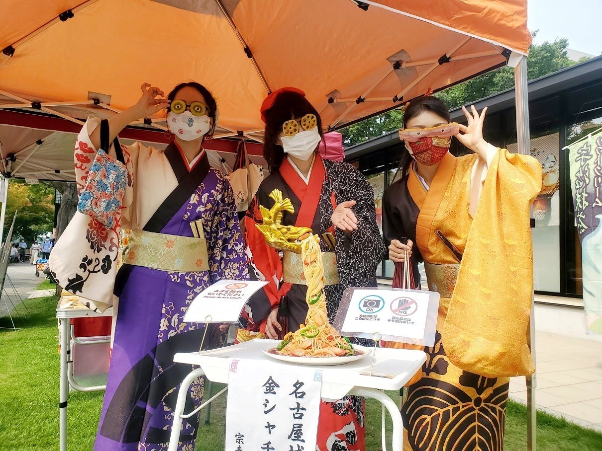 2020/08/11 16:52外のイベントという事もあり、名古屋城で毎月第二週末開催されている宗春街道市に参加させて頂きました。かなり気温の高い中でしたが『あいち戦国姫隊』の姫君様が遊びに来てくれました!ありがとうござりました!着物にマスクって・・・暑かっただろうなぁ きっとこのお着物にも、最近よく見かける小型扇風機が内蔵されていたらいいのにね姫君様に、是非作ってあげて~!!メガネの下は・・・さすが姫! 眼力が暑さに負けてない!こちらは今回初登場のスポット! 『金手羽さん』制作に協力して頂いたのは『日本サンプルさん』こういう楽しい事して、一緒に名古屋を盛り上げていきたいです!姫君様の お美しい それぞれショットをどうぞ(笑)姫君様たちのお美しい写真のUPが今回のクラウドファンディング活動報告の最後の投稿となりそうです。応援頂きました方、又、お気に入りに登録をして頂きました方、有難うございます。開催期間の50日間全く反応が無かったらどうしようかと、不安なスタートでしたが、お陰様で現在時点で90%近くまで行きました。皆様のおかげです。本当に有難うございました!遅くなっておりますがリターンの送付に関して、8月17日の活動終了後にキャンプファイヤーから応援を頂いた方の情報が私どもに届きます。その後私どもで集計を行ってからの発送となり、皆様のお手元へは8月末から遅くとも9月初旬までには到着出来るように準備を進めさせていただきます。まだまだ以前の様に催事が開催されることは先になりそうですが、今後も皆様の地元へお邪魔させて頂ける様に活動して参ります。応援の程どうぞよろしくお願い致します。重ねて有難うございました! もっと見る