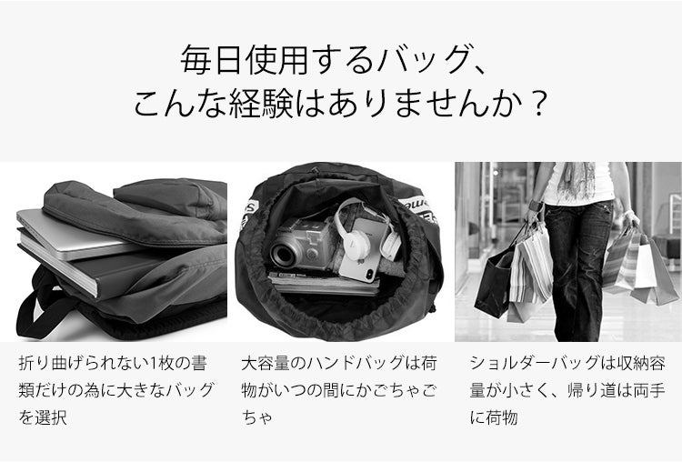 一つのバッグで三つの印象が楽しめる、折りたたみ式3WAYバッグ誕生!