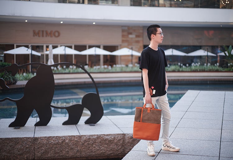 手持ちハンドルを取り付けてスタイリッシュなハンドバッグとして。