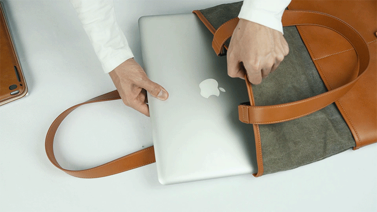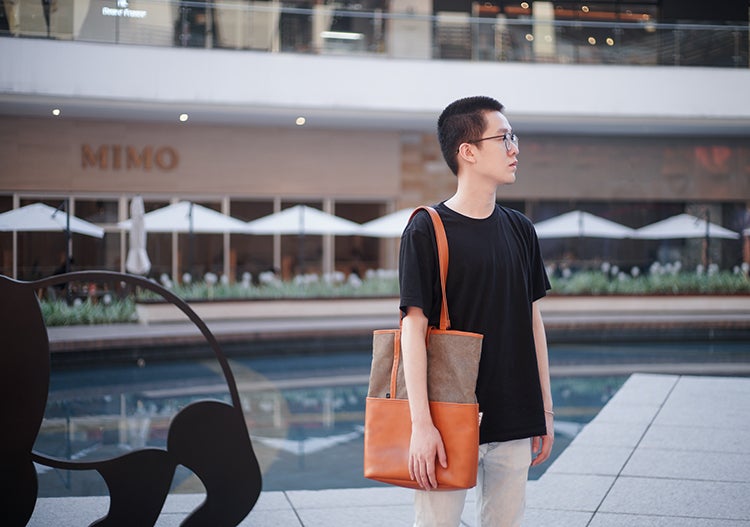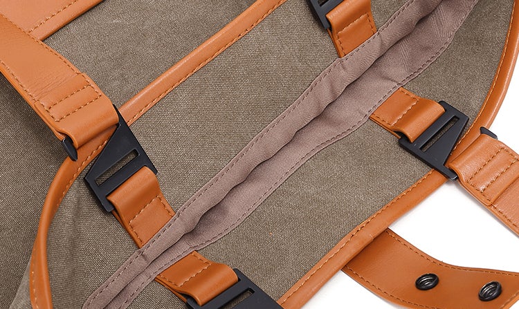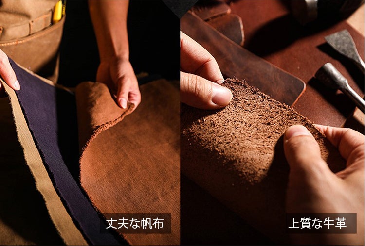 昔は水や氷を運ぶ道具として用いられていたほど丈夫で耐久性のある帆布は、摩擦や汚れに強く清潔感抜群。牛革はトップレイヤーを採用し、天然の透明感が魅力的です。