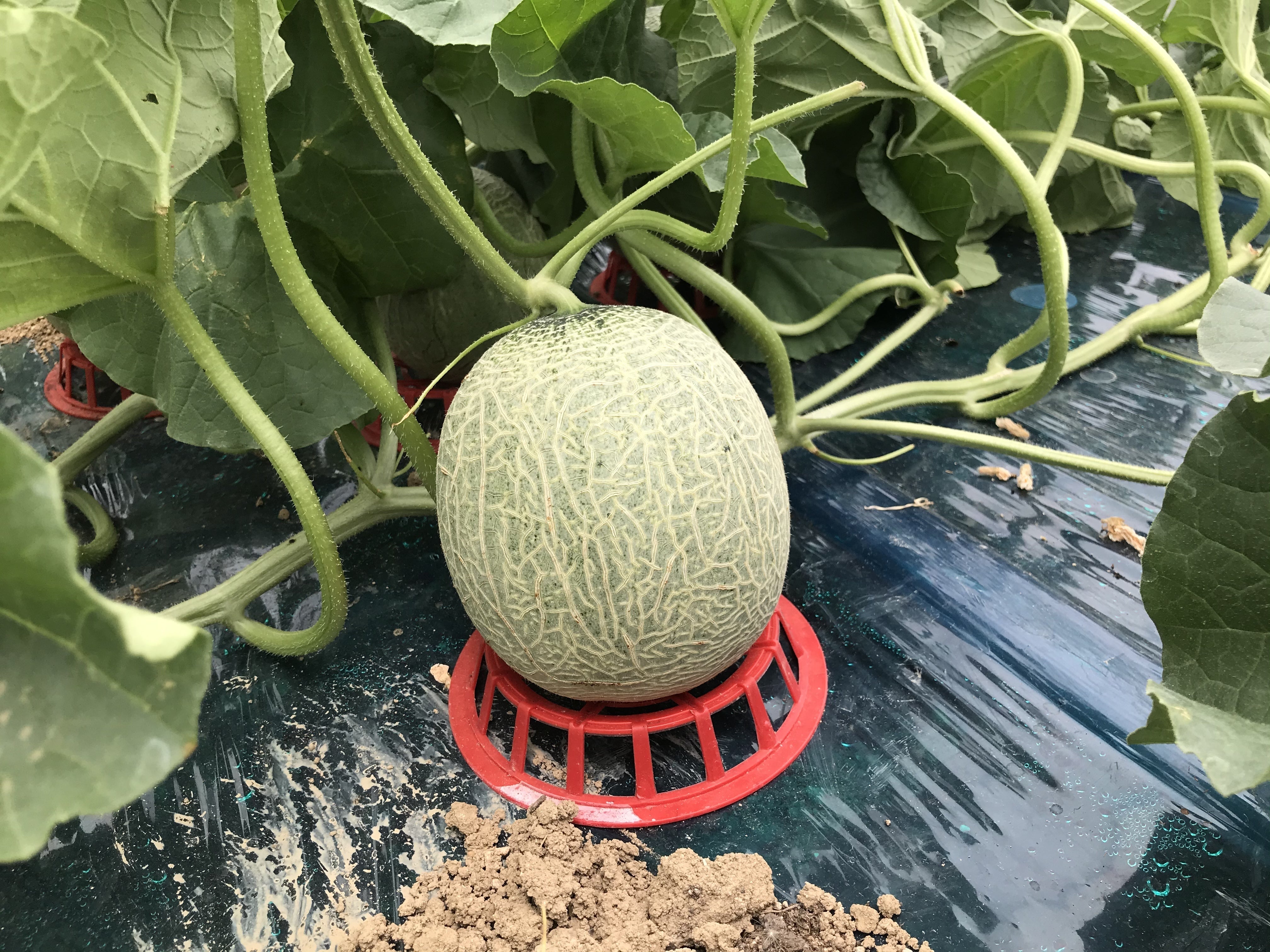 写真は、今シーズン最初に植えたメロンの様子です。メロンのネットがかかりはじめており、綺麗なネットに仕上がりそうです。
