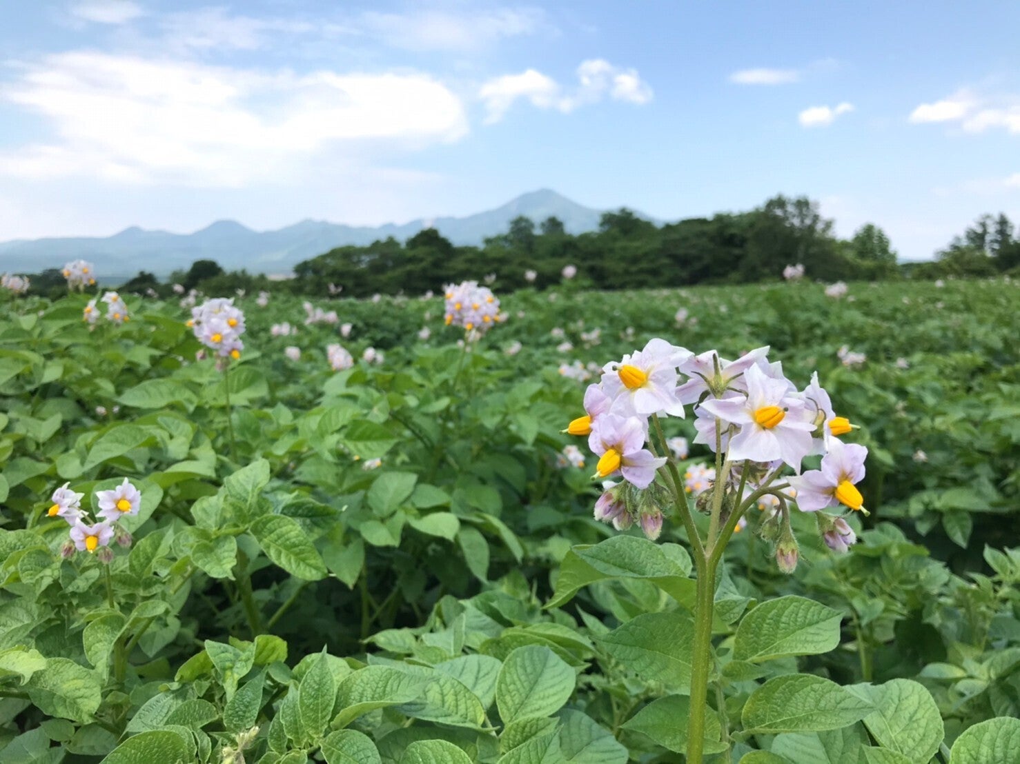 綺麗なじゃがいもの花が満開になりました!北海道を代表する品種「キタアカリ」という品種で、淡い紫色の綺麗な花が咲くんです。毎年この花を見ると、ニセコに夏がやってきた!と感じます!