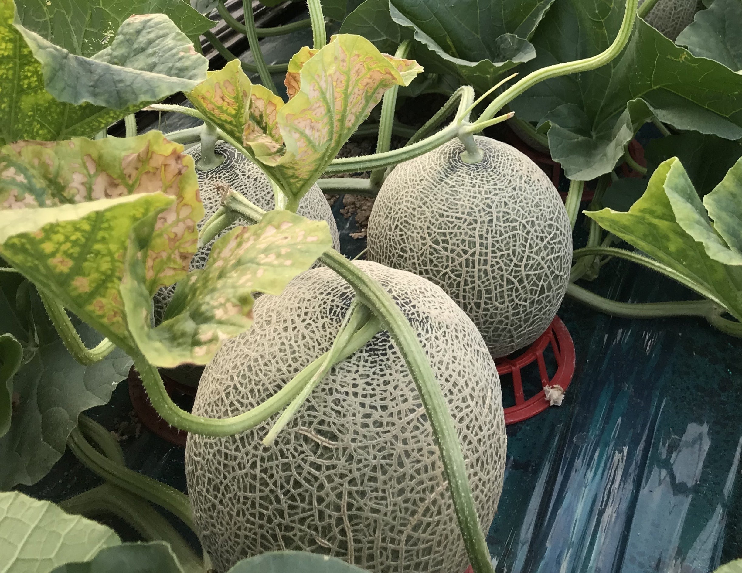 メロンから出ている葉っぱが黄色くなっているのですが、これは病気ではなく、メロンが「もうすぐ収穫だよー!」と教えてくれているサインなんです。