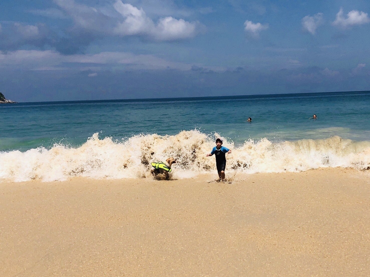 いつもは多くの白人さんで大賑わいの、ナイハーンビーチですがパラパラと。4ヶ月帰国できないロシア人のご家族と世間話をするなど、のんびりタイムが流れています。