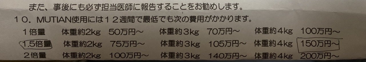 回復するにつれて体重が増えますが、体重が増えたら増量するため、更に値段があがります。