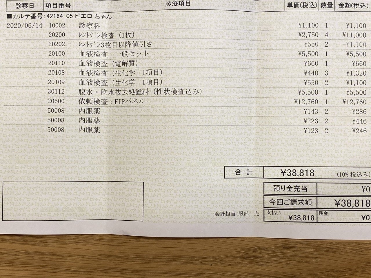 2020/06/14、ピエロがFIPと診断され、