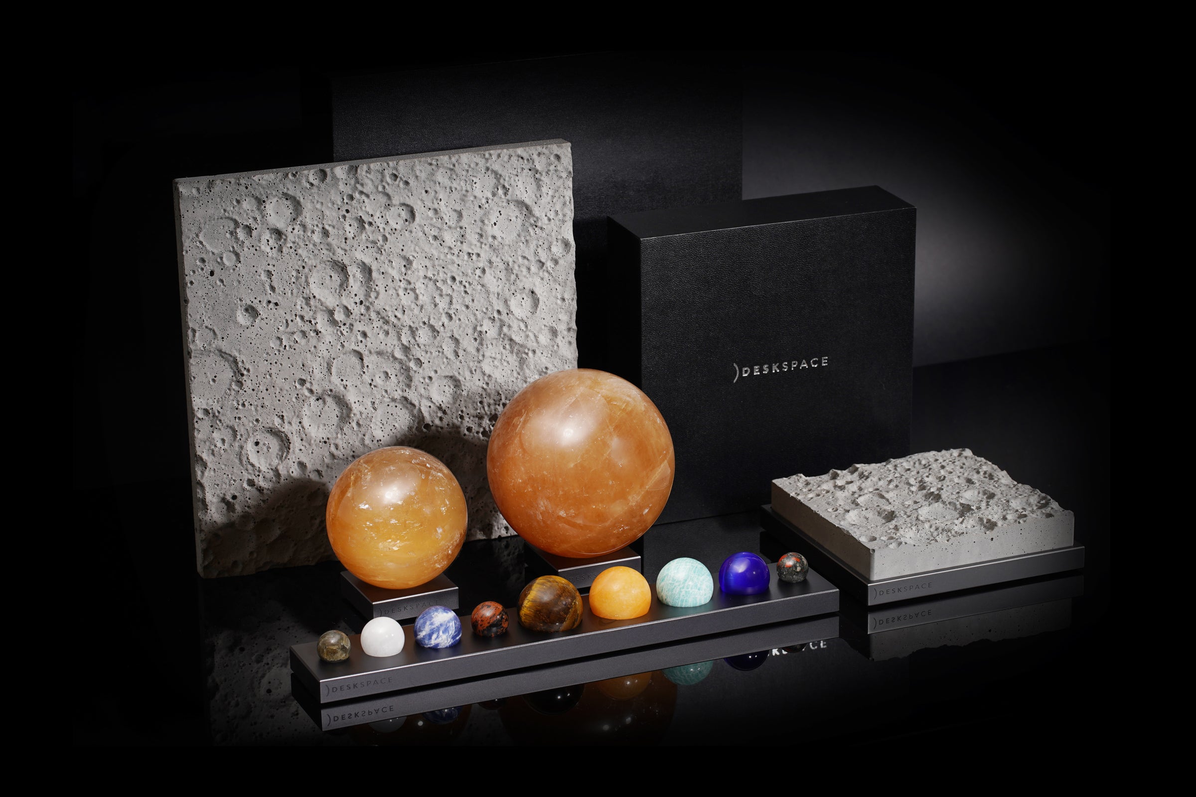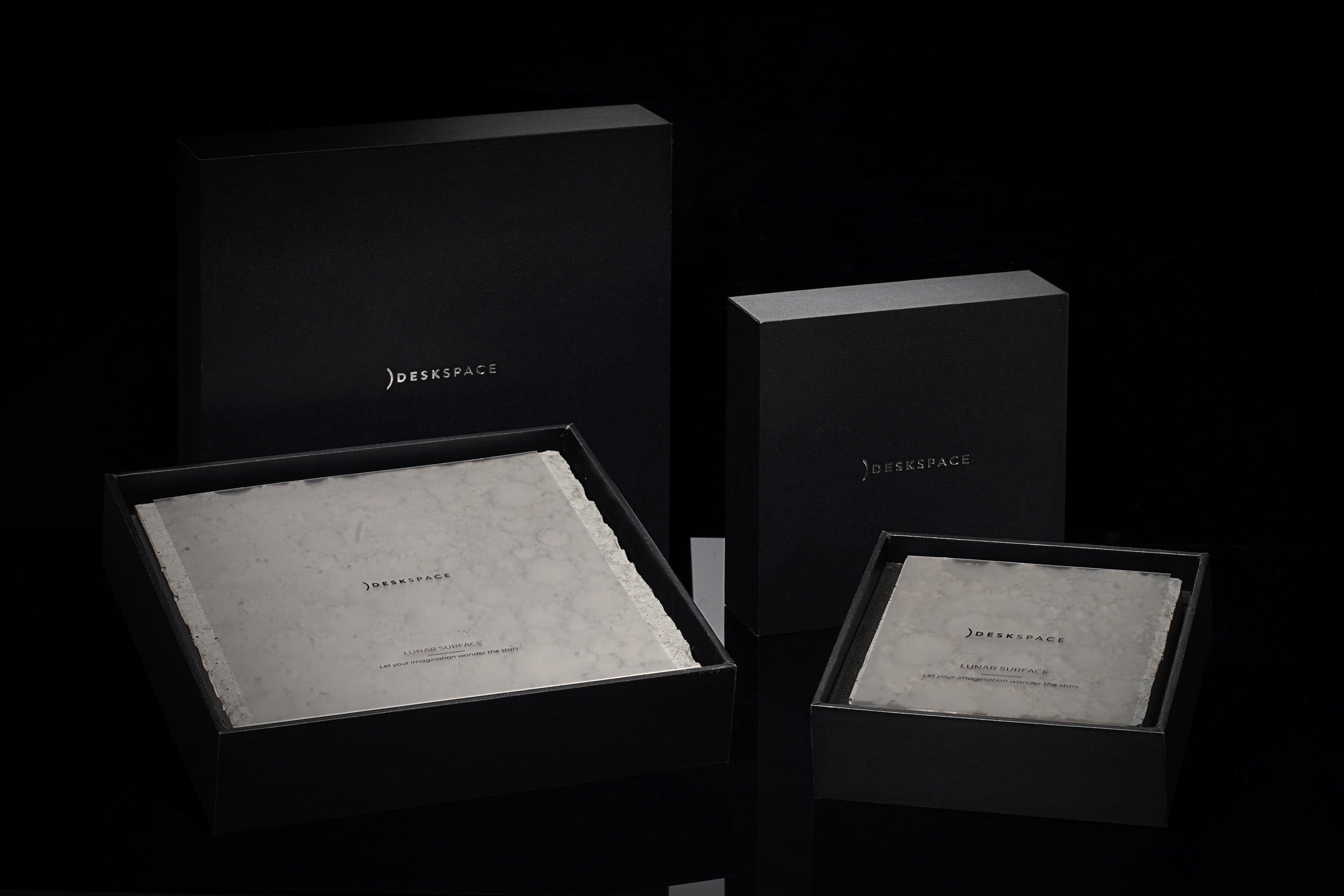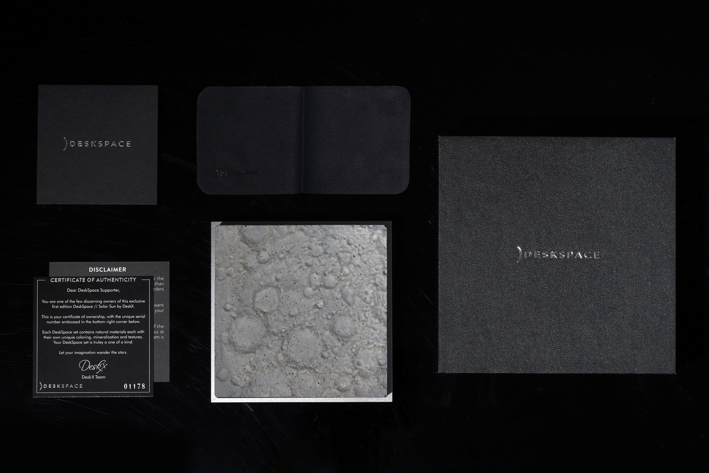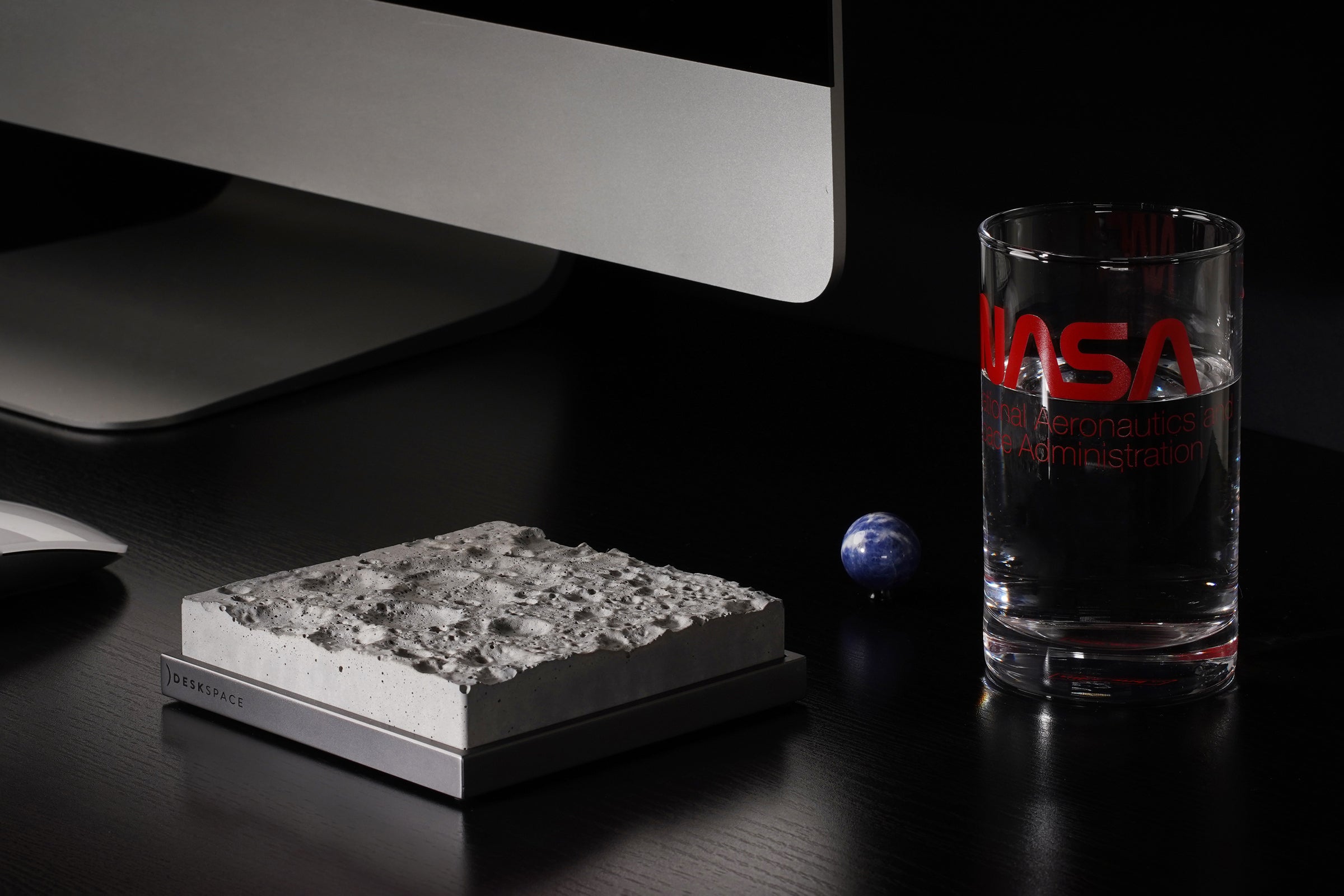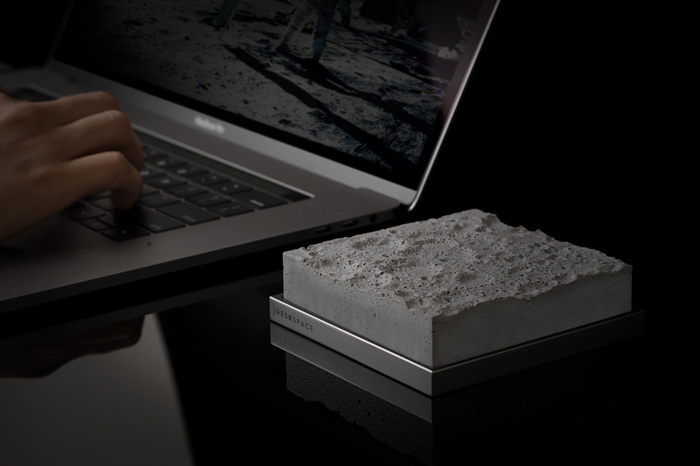 100mm x 100mmのコンクリート片であるこの精巧な月面モデルは、精密な機械加工、アルマイト処理の施された土台を持ち、磨きあげのミラーロゴがあしらわれています。このアイテムは、他のすべてのDeskSpace作品とマッチし、美しい宇宙をテーマにしたコレクションを形成します。細部へのこだわりと一貫した美しさが徹底されています。