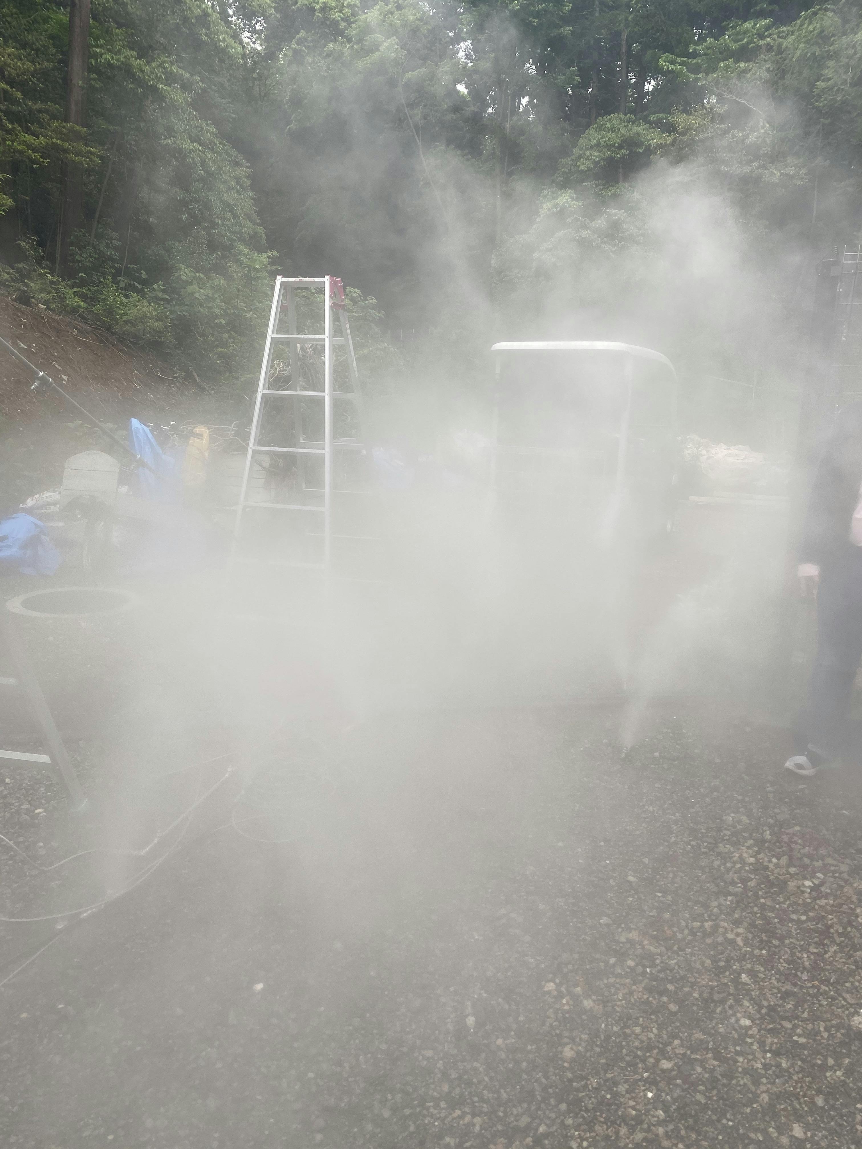 そこで、ゲストの方たちが心地よくお楽しみいただけるよう、今回はミストシャワーのサービスを始めたいと考えています!!