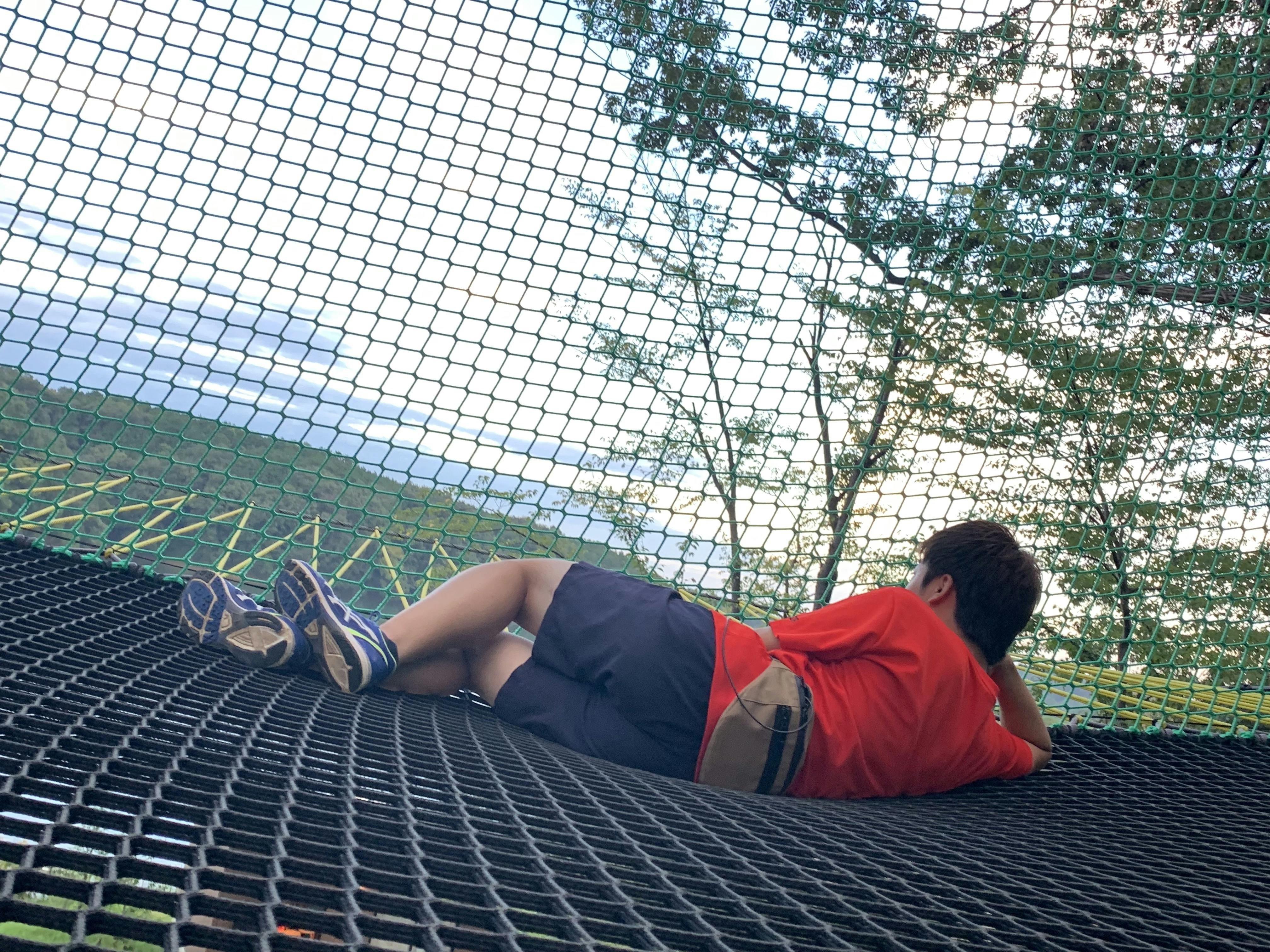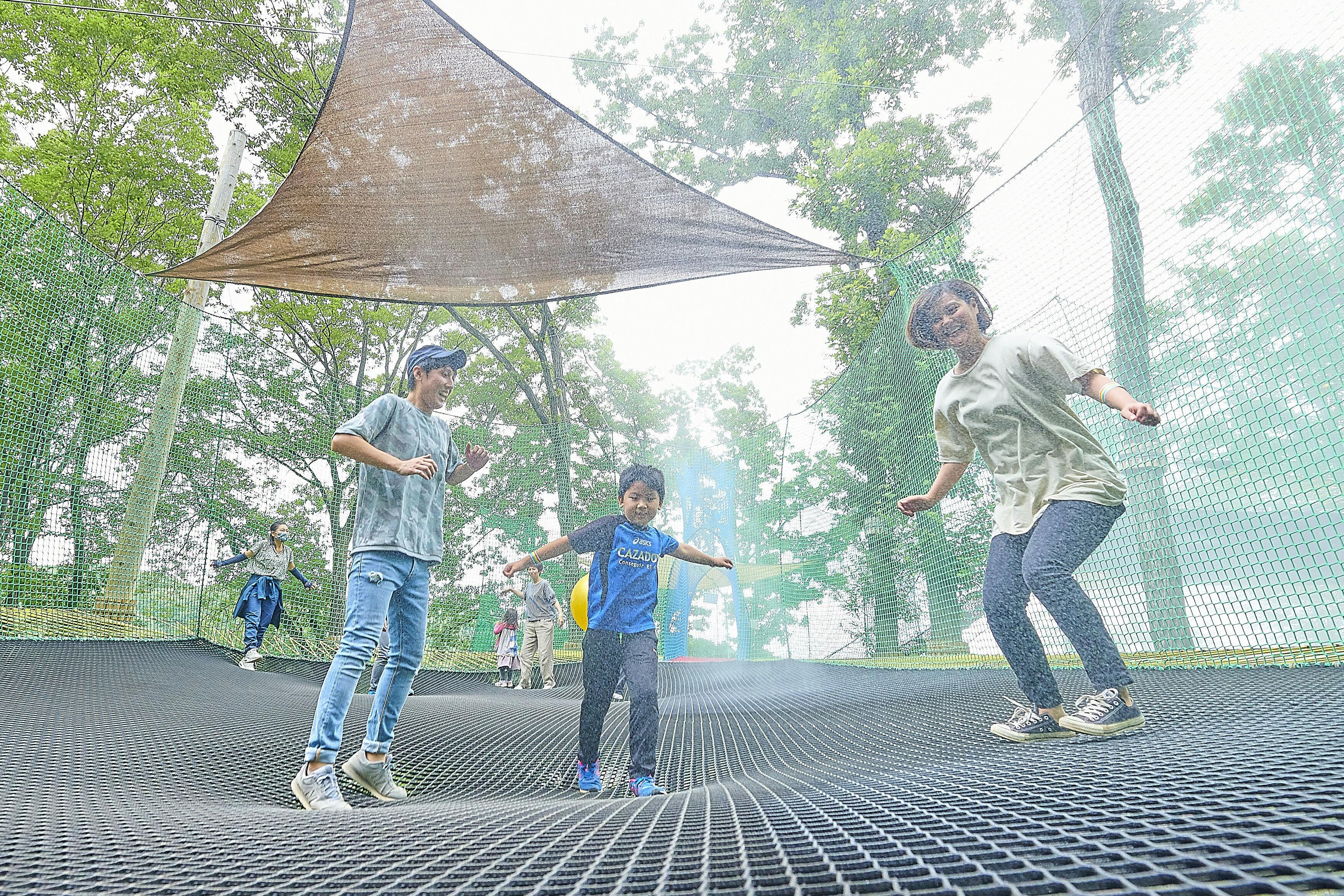 ファンモックは一見、トランポリンのようにも見えますが、それとはまた違う弾みの遊びです。