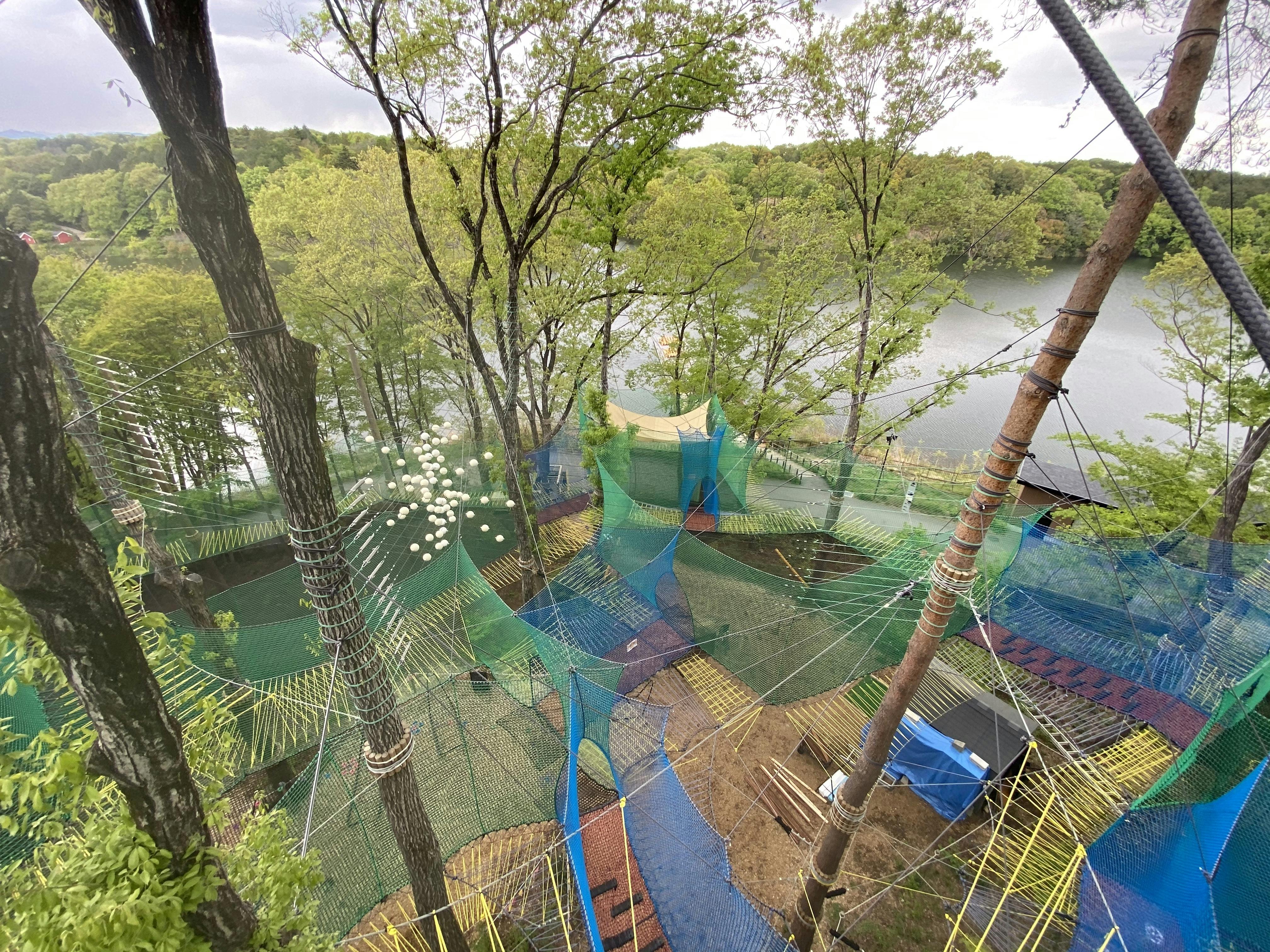 上記写真のように、森の中に張り巡らされたネットの中を自由自在に遊び回ることができます!
