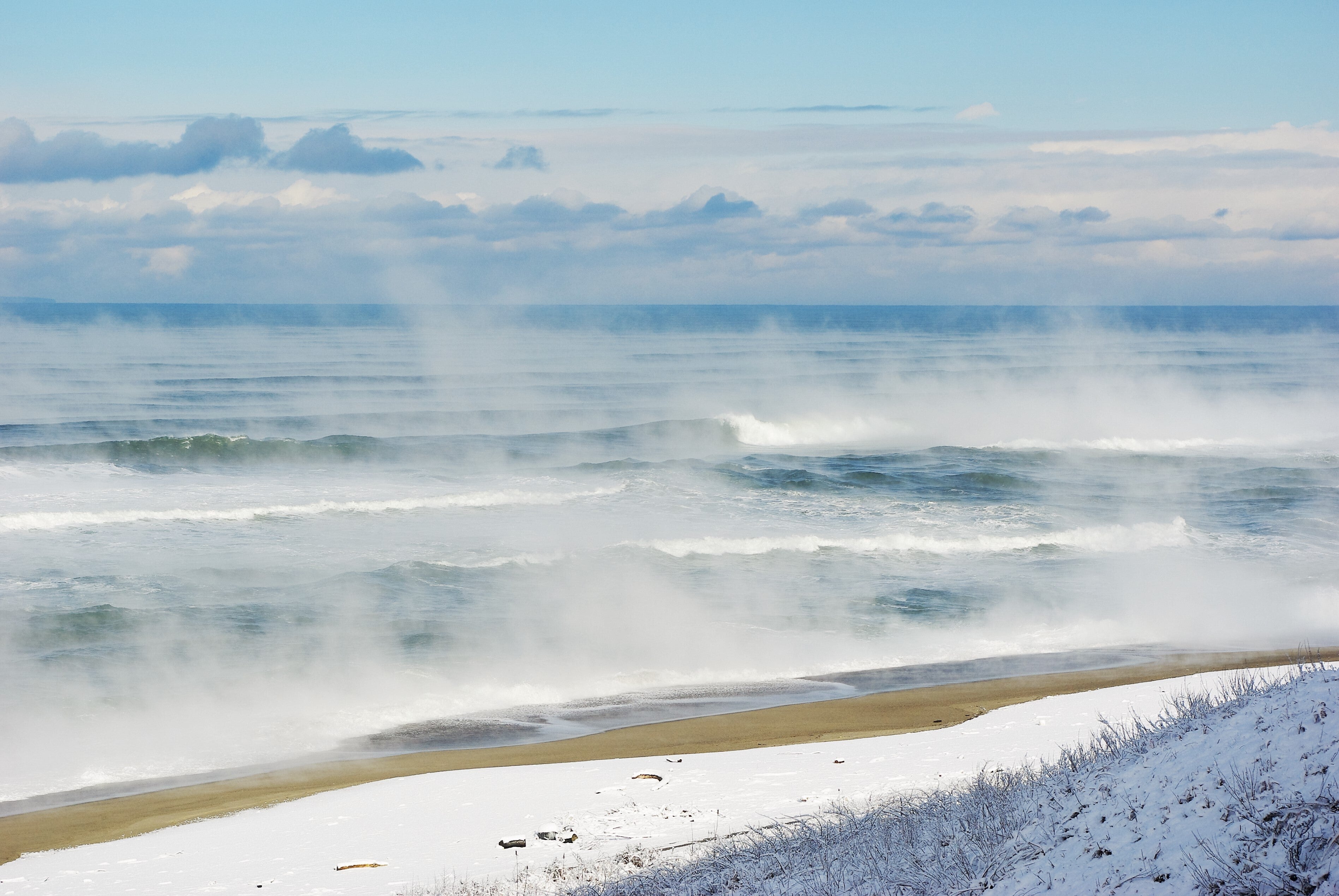 冬のけあらし。海水にどんどん雪が蒸発している風景です。