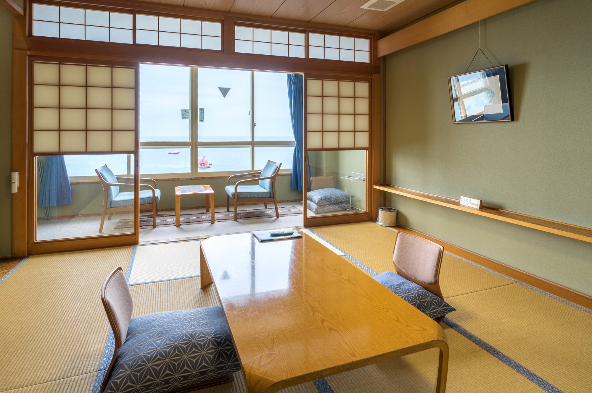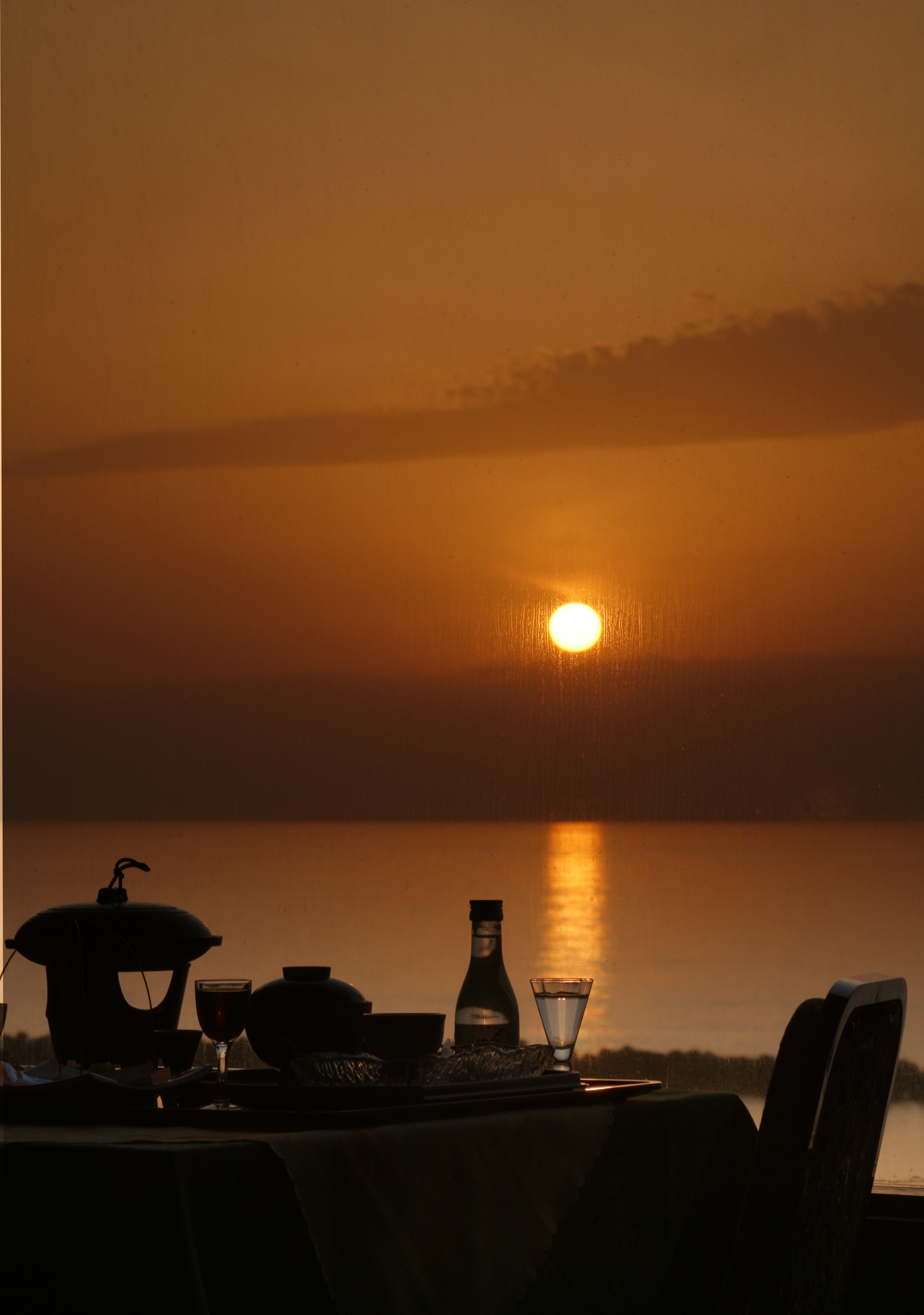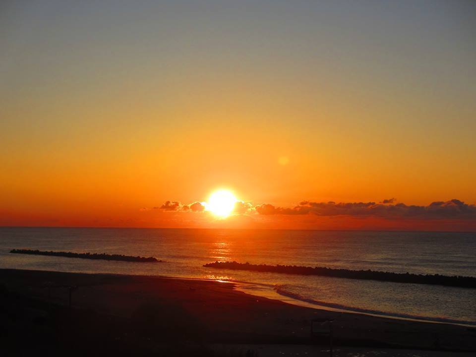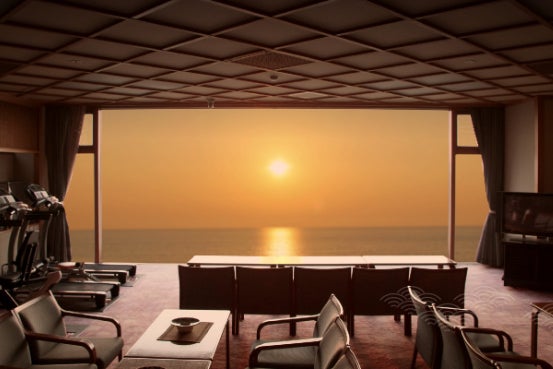 そして日本海に沈む夕日。4月から8月に掛けては夕食を召し上がりながら夕日が楽しめます。