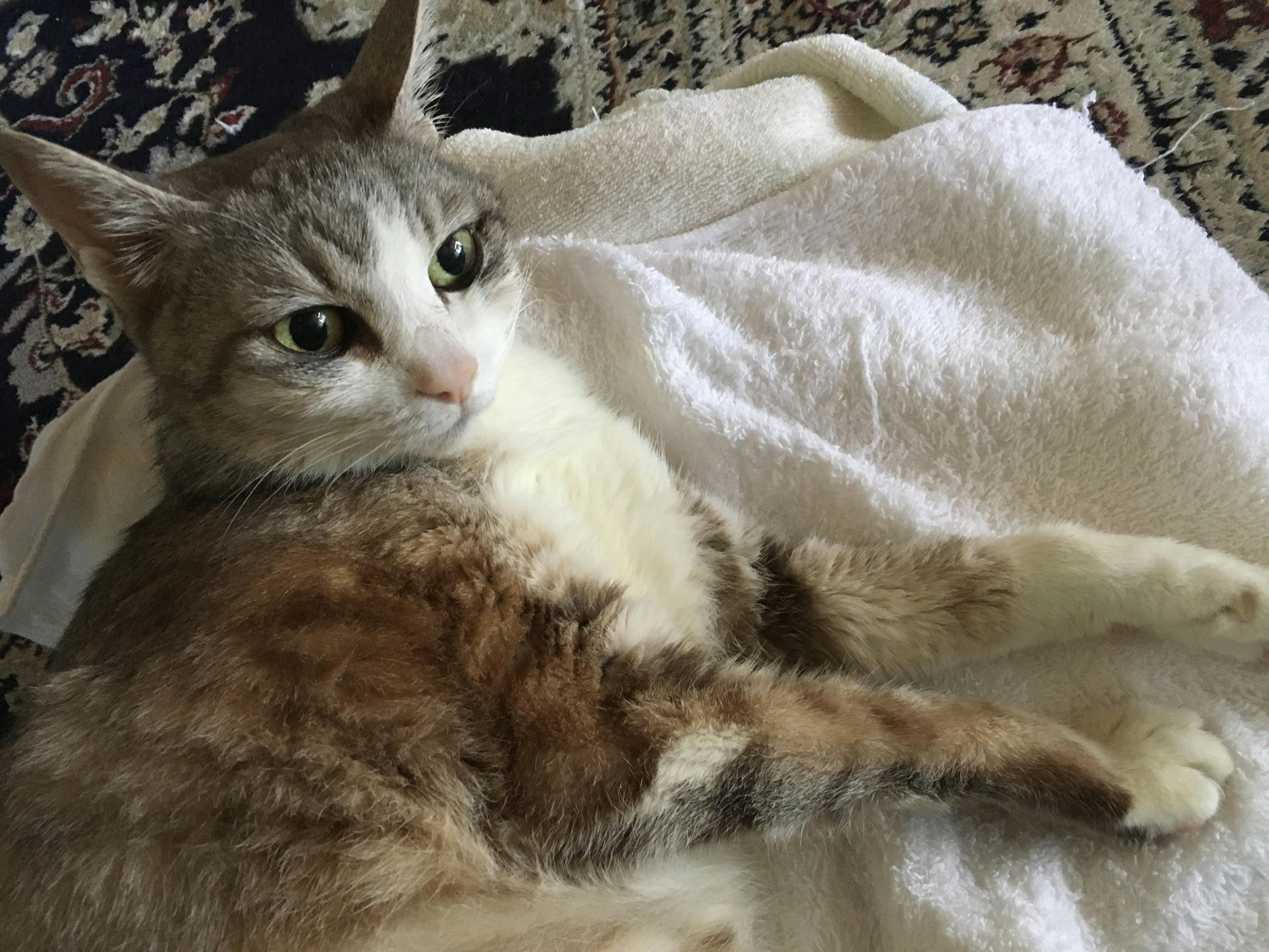 2020/08/29 22:58今まで応援してくださった皆様へ。本日8/29、こまこが虹の橋を渡りました。悲しい報告をすることになってしまい本当に辛く、申し訳ないです…8/24に体調が思わしくなく病院へ行ったのですが、栄養が足りてないのでご飯をもう少し食べさせてあげるように頑張ってくださいと言われ、その日は点滴を打ってもらい帰宅しました。それから3日経過し、食欲は低下する一方で呼吸は苦しそうで手足の筋肉はすっかり落ちてしまっていましたマズい予感がしたので本日病院へ向かうと 車の中で呼吸困難のような状態になってしまい、検査の結果は腫瘍の肺への転移が進行していて水も溜まっている状態だったということでした。これ以上の治療をしてもこまこが苦しむだけかもしれない、と言われ それでも最後までそばにいてあげたいと思い 安楽死の手段は取らず 痛み止めの点滴をして貰ったところ、呼吸も落ち着いたので帰宅しました。ですが、帰宅して30分も経たないうちに、こまこの容態は急変し私の腕の中で息を引き取りました。今はとにかく寂しくて悲しくてつらいです。腫瘍が悪化してからはこまこの腫瘍を毎日ぬるま湯で洗って消毒して、作った服を着せてあげて…大変でしたが不思議と一切苦ではありませんでした。こまこは最期まで生きたいと頑張っているようでした、完治させてあげることができず 苦しい思いをさせてしまったことが本当に心残りですそれでもこまこは私の家で一緒に暮らして幸せであったと願いたいです。私はこまこと過ごした約14年間本当に幸せで、もっともっと一緒に居たかったです。リターンに関してなのですが、悲しい結果になってしまいましたので…グッズ等はどうするべきか等…もう少し気持ちの整理がついてから考えさせていただけたらな、と思っています。手元に残った支援金ですが、こまこの葬儀やまだ元気に暮らしてるもう一匹の猫のチャチャの健康管理の通院費、動物施設への寄付等に使わせていただこうと思っていますご支援してくださった皆様、今まで応援してくださり本当にありがとうございました。暑い日が続いていますので体調管理には十分気をつけてお過ごしください。きっとこまこは虹の向こう側で美味しいご飯をいっぱい食べていっぱい寝ていっぱい遊んでいると思います。頑張ったねこまこ、幸せを沢山ありがとう!車の中で何気なく撮った写真、最後の1枚になりました。今までありがとう、大好きなこまこ。 もっと見る