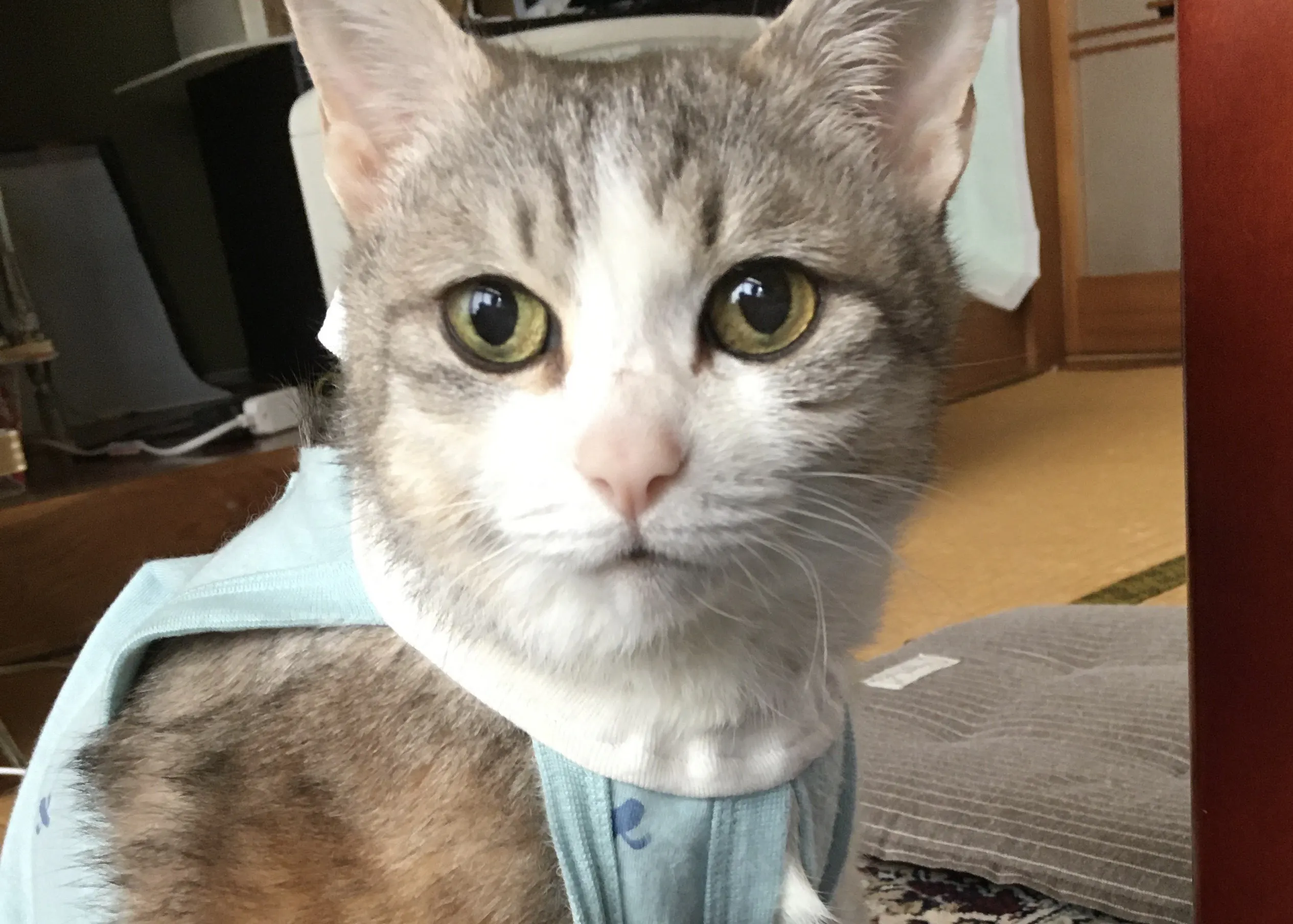 作ること5着目にしてようやくしっくりきてくれた傷舐め防止服